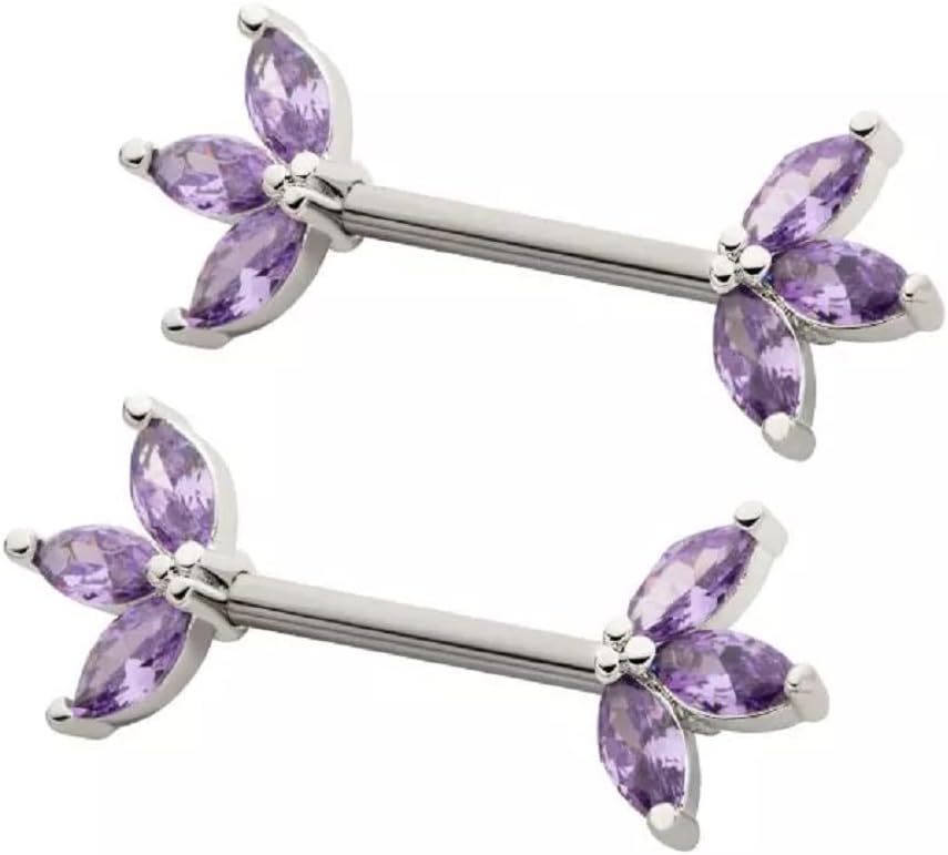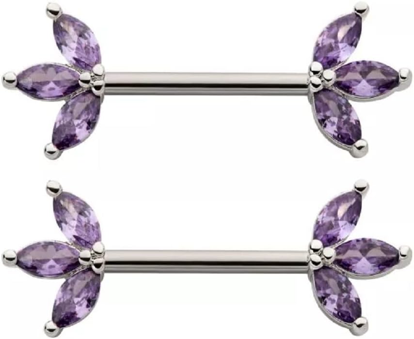 - STYLE: Triple CZ Crystal Marquise Ends Nipple Barbells