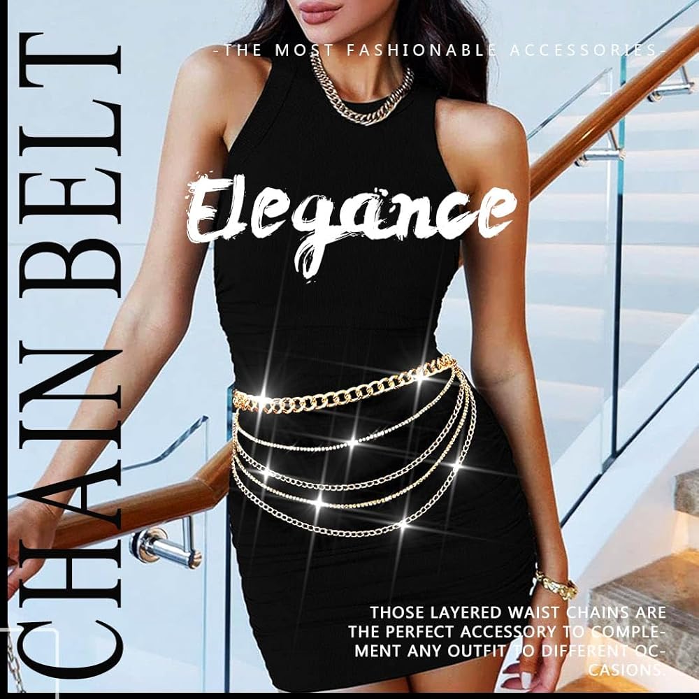 Layered body chain's waist size is about 105cm.Free size for women and girls.You can adjust it to your own size to let this dainty party body chain fit your body perfectly.