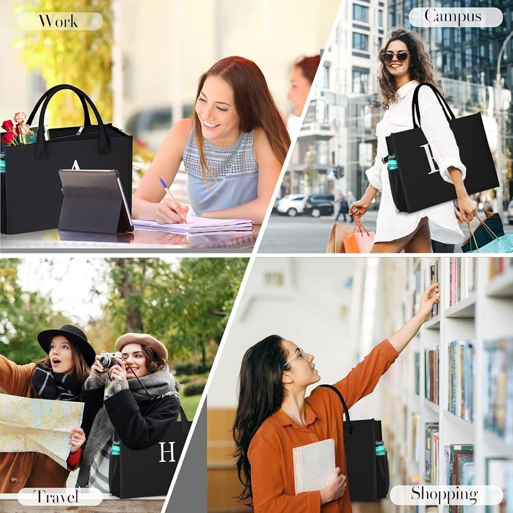 【Tailored to Your Identity】The initials on these bags are more than just letters; they represent your unique identity. Express yourself and make a statement with accessories that are as individual as you are. Comes with a delicate pink ribbon that can be tied into a beautiful bow on the tote bag, adding a lovely touch to the bag. It was a personalized gift for women during various holidays. Such as mother's day, teacher's day, Christmas, Thanksgiving, Anniversary, Wedding, Graduation, Birthday.