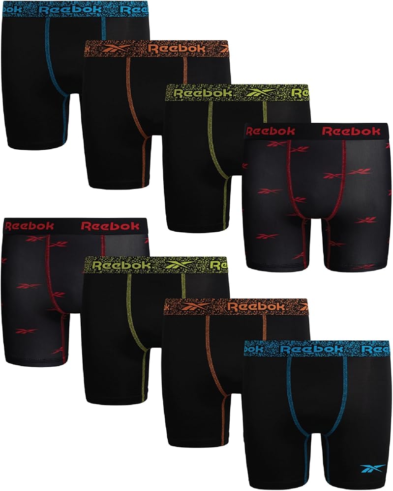 Reebok Boys Performance Boxer Briefs are a great choice for your active boy. These wicking boxer briefs will keep him cool and dry no matter what the day throws at him. Assorted colors available. Each 4 pack comes with a variety of colors so your little one has plenty to choose from Easy to care for boxer briefs are made from durable material that is machine washable for your convenience Performance fit underwear stay right where you want them thanks to the comfy and reliable elastic waistband Stretchy fabric is the perfect balance of polyester and spandex so these boxers will stay in place whether he's playing sports, in gym class, or relaxing at home Quick Drying performance boxer briefs are great for athletic kids. The wicking technology will control moisture keeping him nice and dry; Please Reference the Variations for All Available Sizes & Colors! Reebok Offers Premium Apparel because we value every customer that visits our listings! Stop by Our Storefront to See the Rest of Our Great Deals, we're confident you're going to find items that anyone who needs a gift will absolutely love and adore!