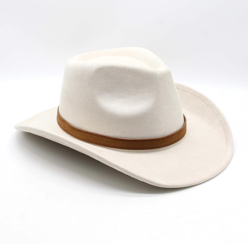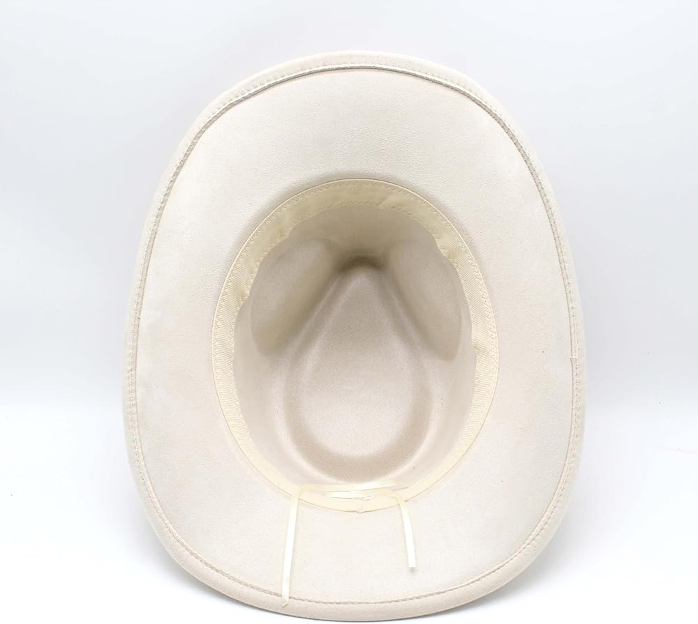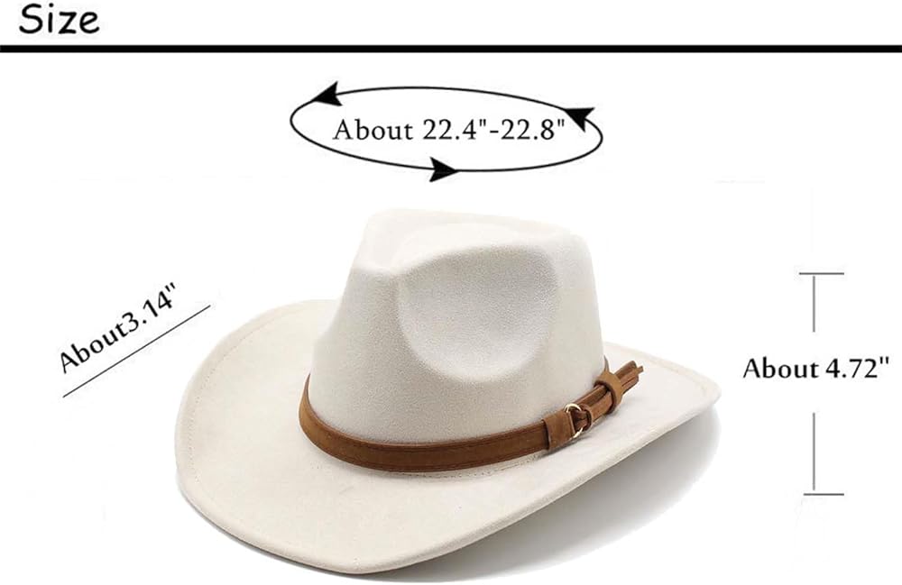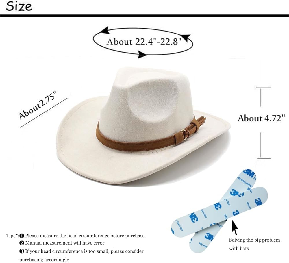 [Size]: Our suede cowboy hats have hood circumference :22.4"-22.8", brim width :3.14", hat height :4.72", suitable for most men and women. At the same time, there is an adjustable cap band inside the cap, you can adjust the cap band to fit you.