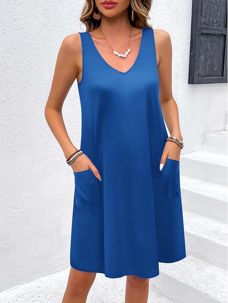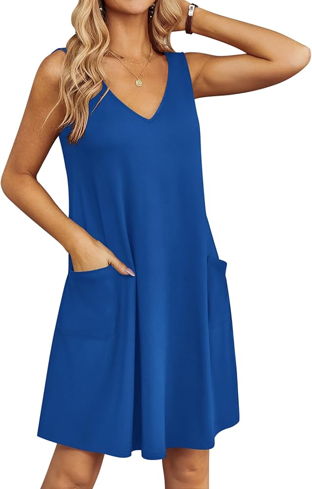 Women's sleepwear featuring exquisite design, sleeveless design for easy wearing, sexy v neck to show feminine charm, two sides pockets are convenient and functional and loose fit suitable for all types of body. The tank nightgown comes with beautiful cute print.
