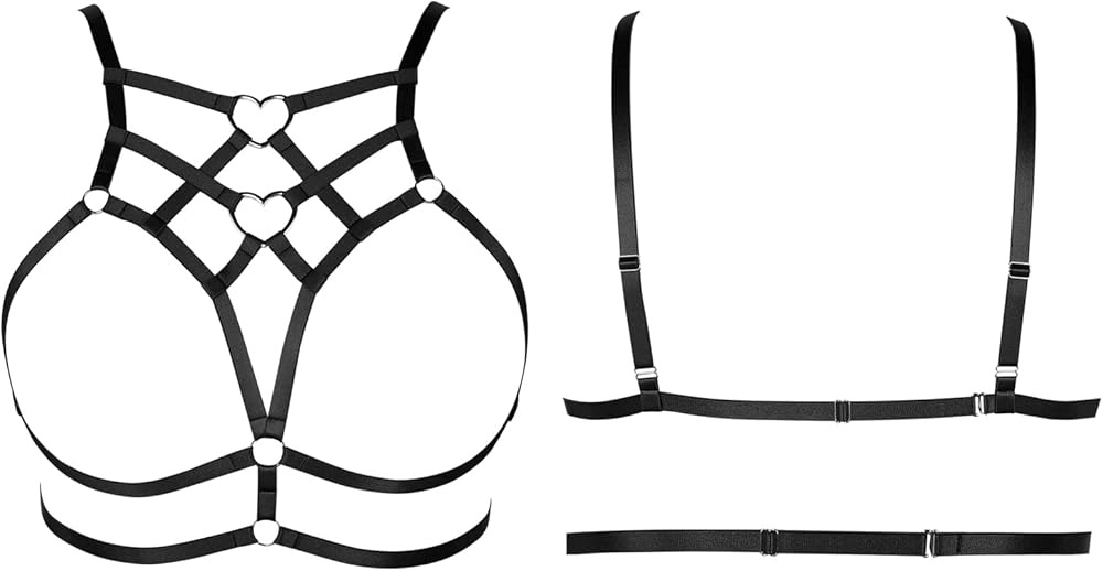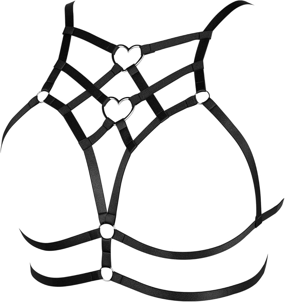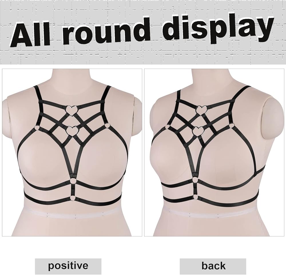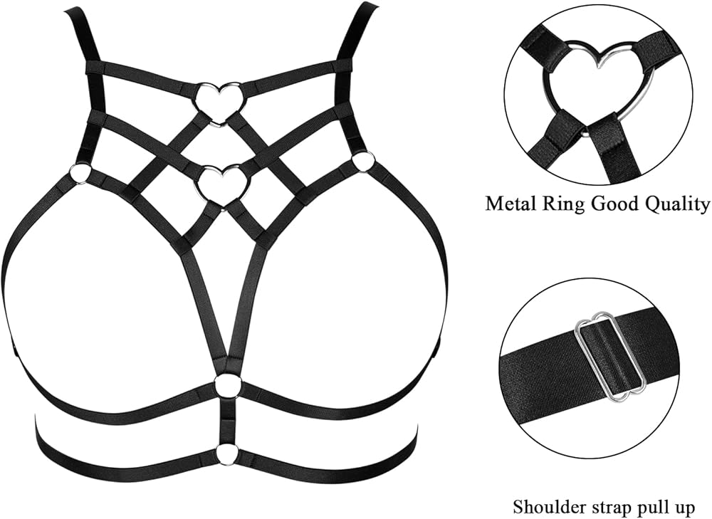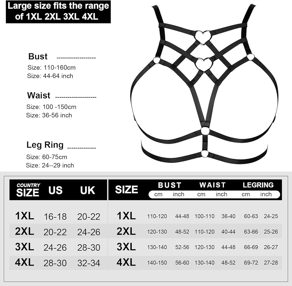 Punk Body Harness Gothic Lingerie Womens Plus Size Waist Cage Breast Hollow-Out Bra Strappy Tops Peach Shape at Chest Belts