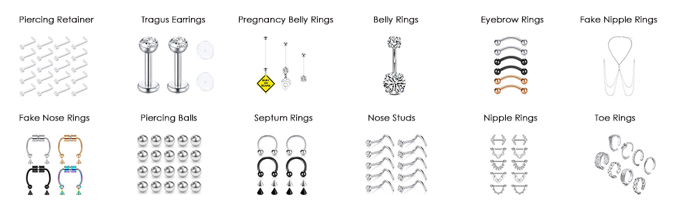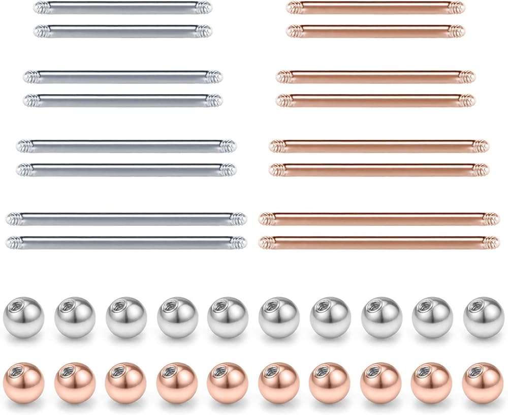 [Total 36pcs] 20pcs 5mm replacement screw balls, 16pcs staight piercing bar, come with one free gift velvet bag