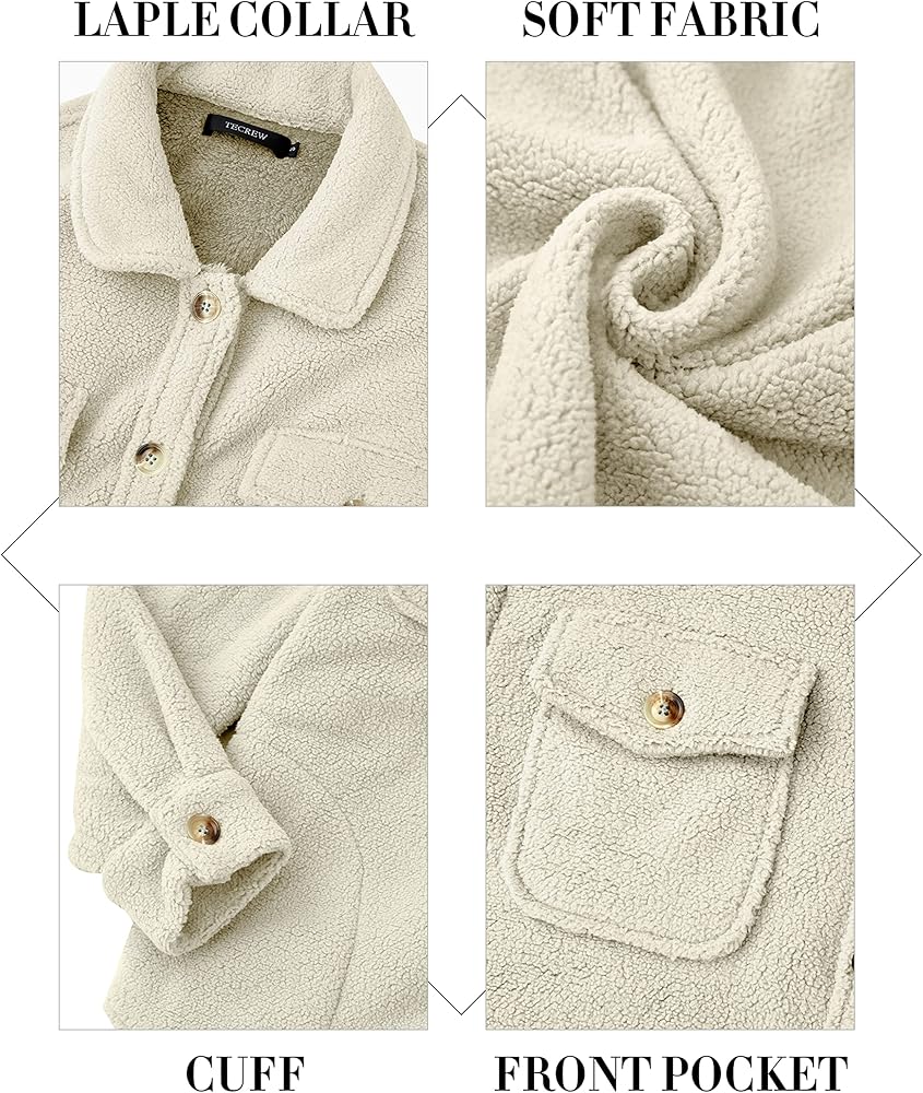 Occasion: The faux-sherpa coat is just what all ladies love in winter! Wear this shirt jacket over a basic crop top or bodysuit with skinny jeans and boots for a trendy look.