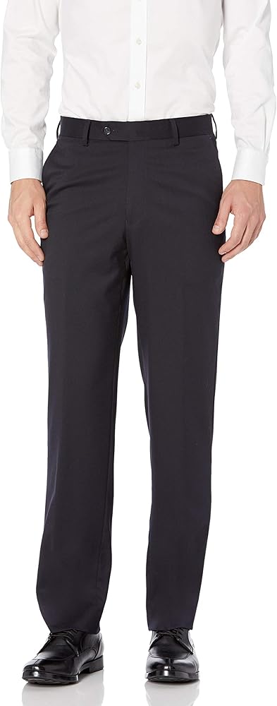All year round wool suit separate performance by palm beach. Solid black sam flat front suit pants, with extend tab through front, 1/4 top pockets, 2 back pockets with button closure. Designed with and extension waistband for added ease and comfort.