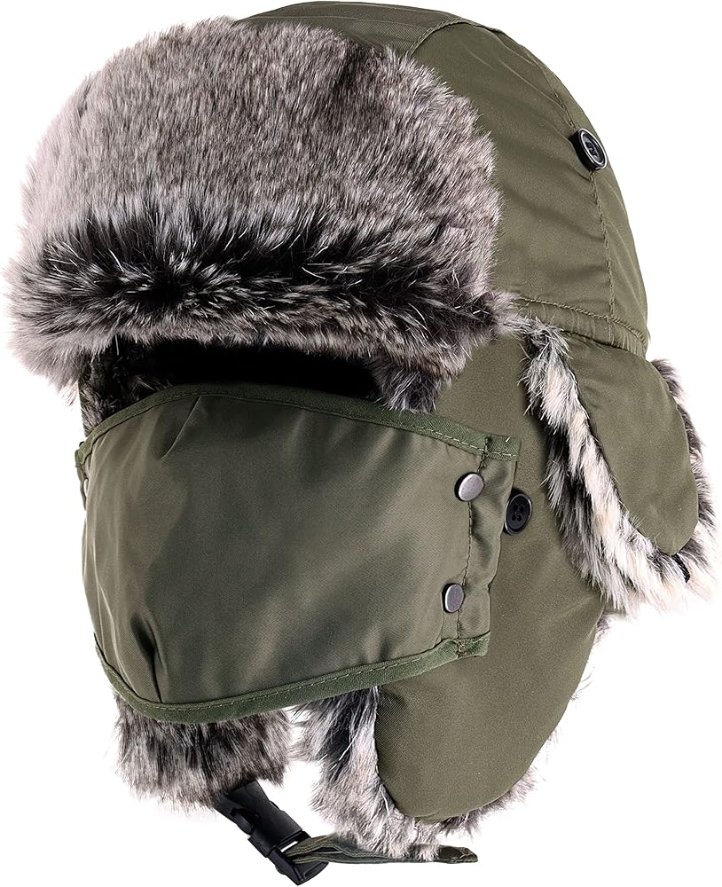 💧 [WATER RESISTANT] - Our modern advanced water resistant trapper and facemask essential set is made from 100% Polyester materials. The ushanka style faux fur will provide lasting warmth and coverage for you throughout the season.