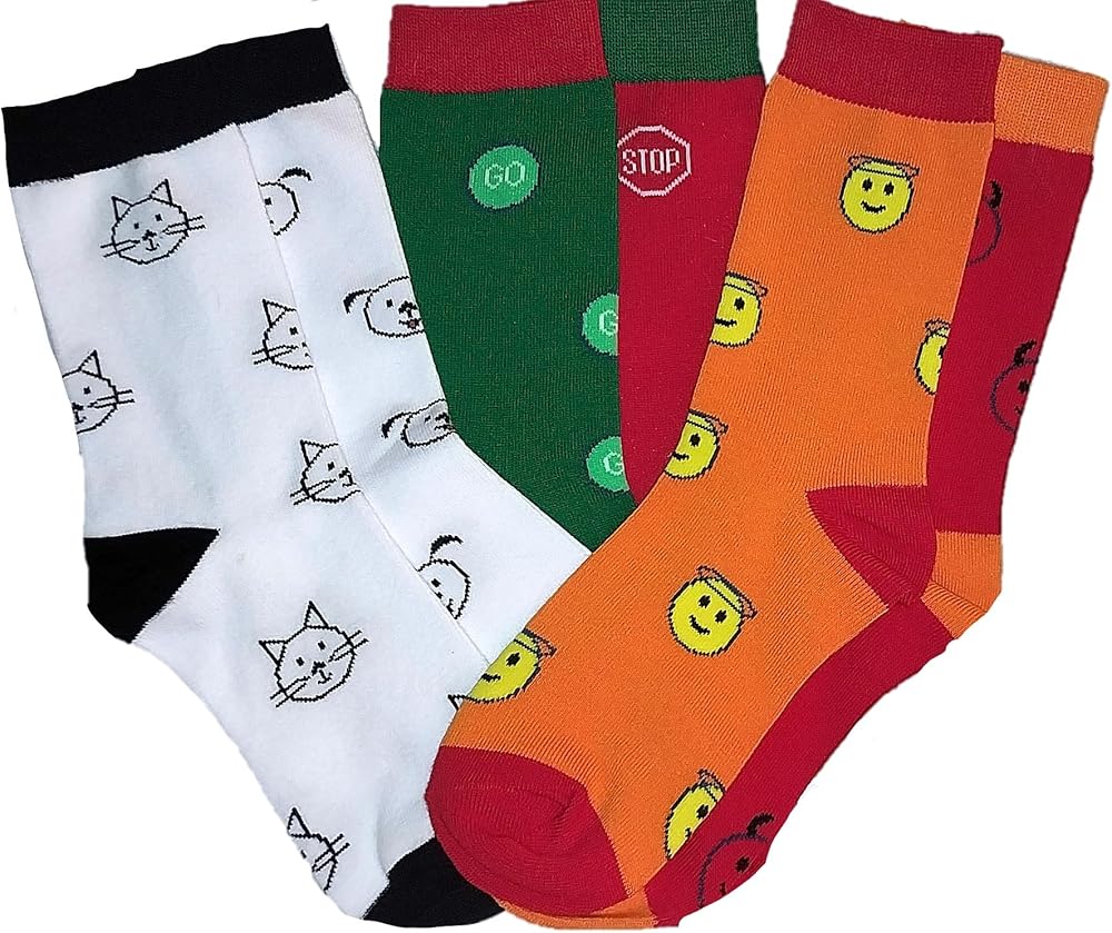 Kids Crew Cut Socks - The Opposites Collection- US Sizes Ages 3-6(S), Ages 6-9(M), Ages 9-12(L). 3 Pairs Per Pack.