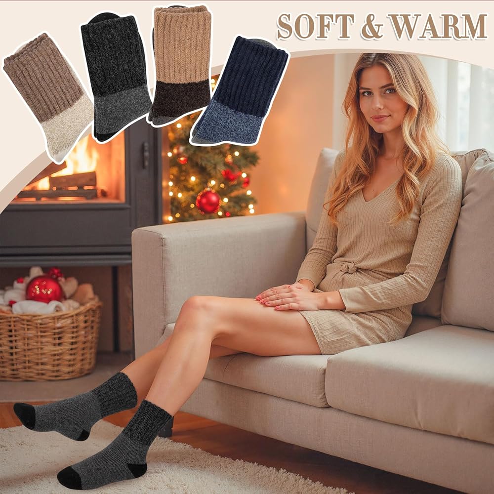 Size and Style: 4-piece winter socks for women are American standard size, suitable for American shoe sizes 5-10. There are various styles and colors of warm socks for women to choose from, the classic solid color and stitching design make this thick socks women timeless.