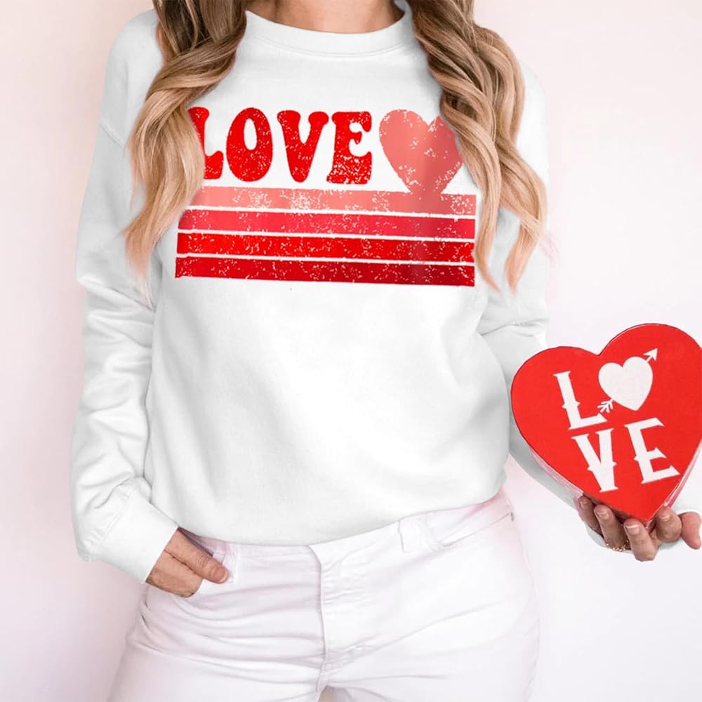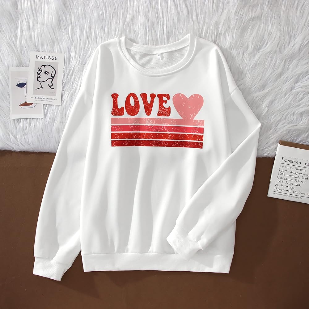 ♥ Design: Casual pullover love printed sweatshirt top for women. Relaxed fit design, heart long sleeve crewneck, heart sweatshirt, lightweight sweatshirt women, graphic sweatshirt. Create a stylish and casual look in your own style!