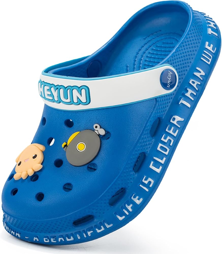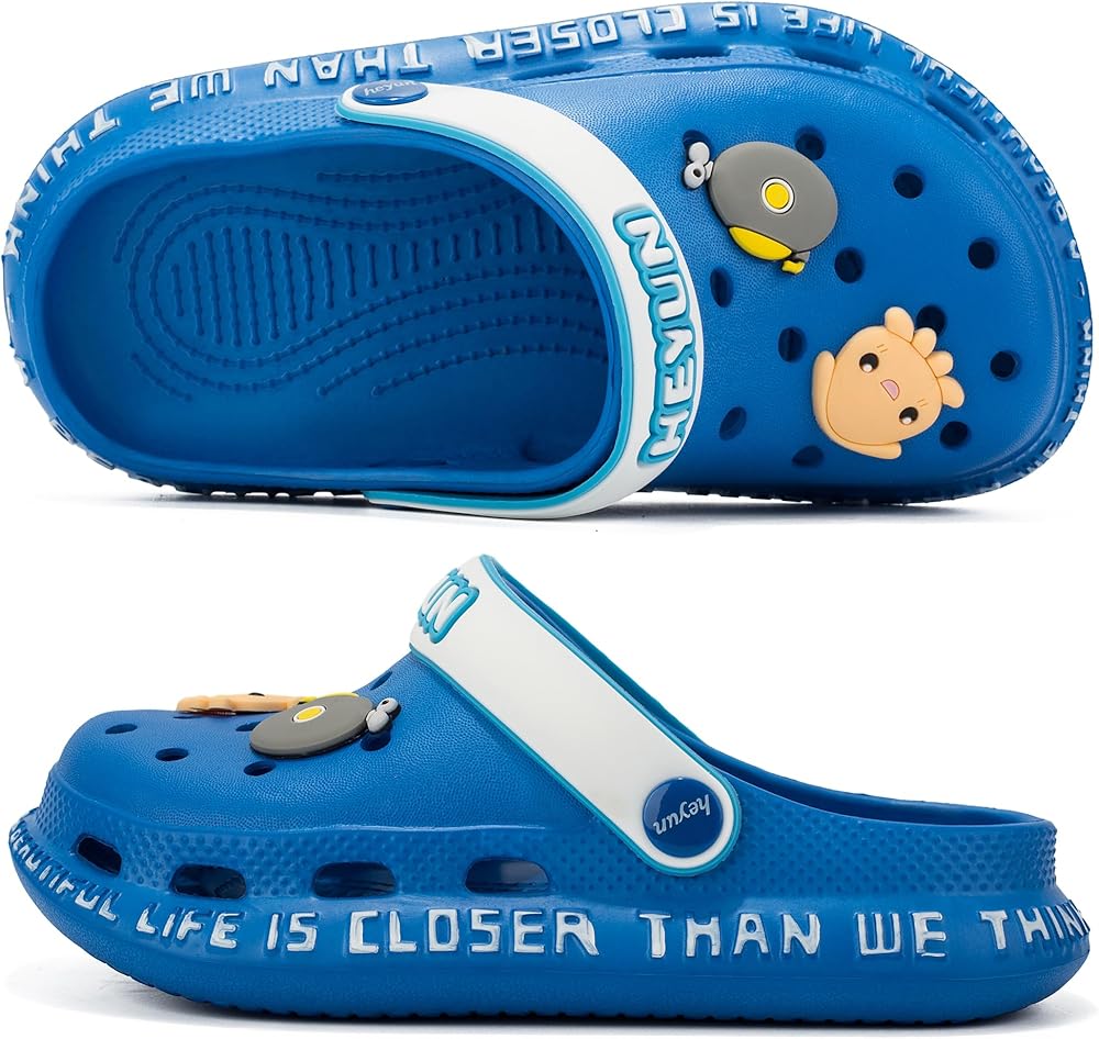 【CUTE & UNIQUE】The solid colors covered with Cartoon anime patterns makes these little kid's clogs look like different and lovely.The unique design of the upper can effectively accelerate air circulation and keep the sandals dry.