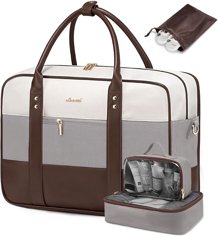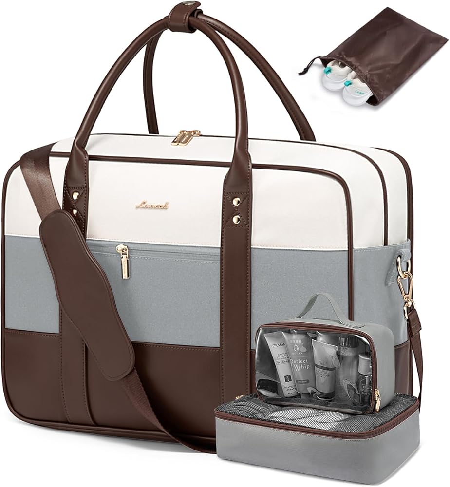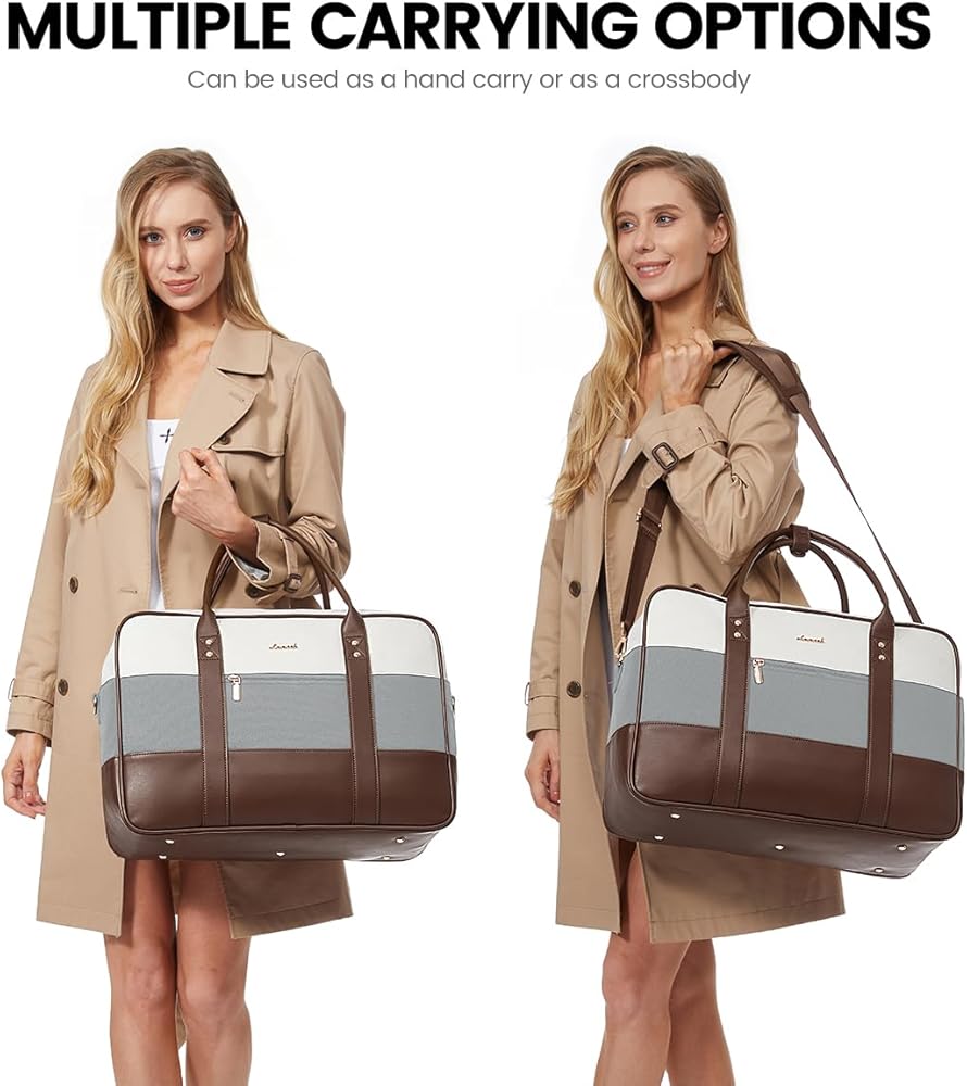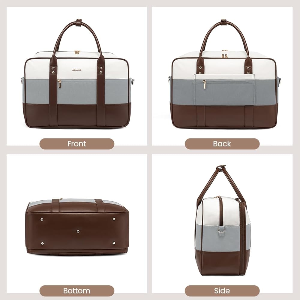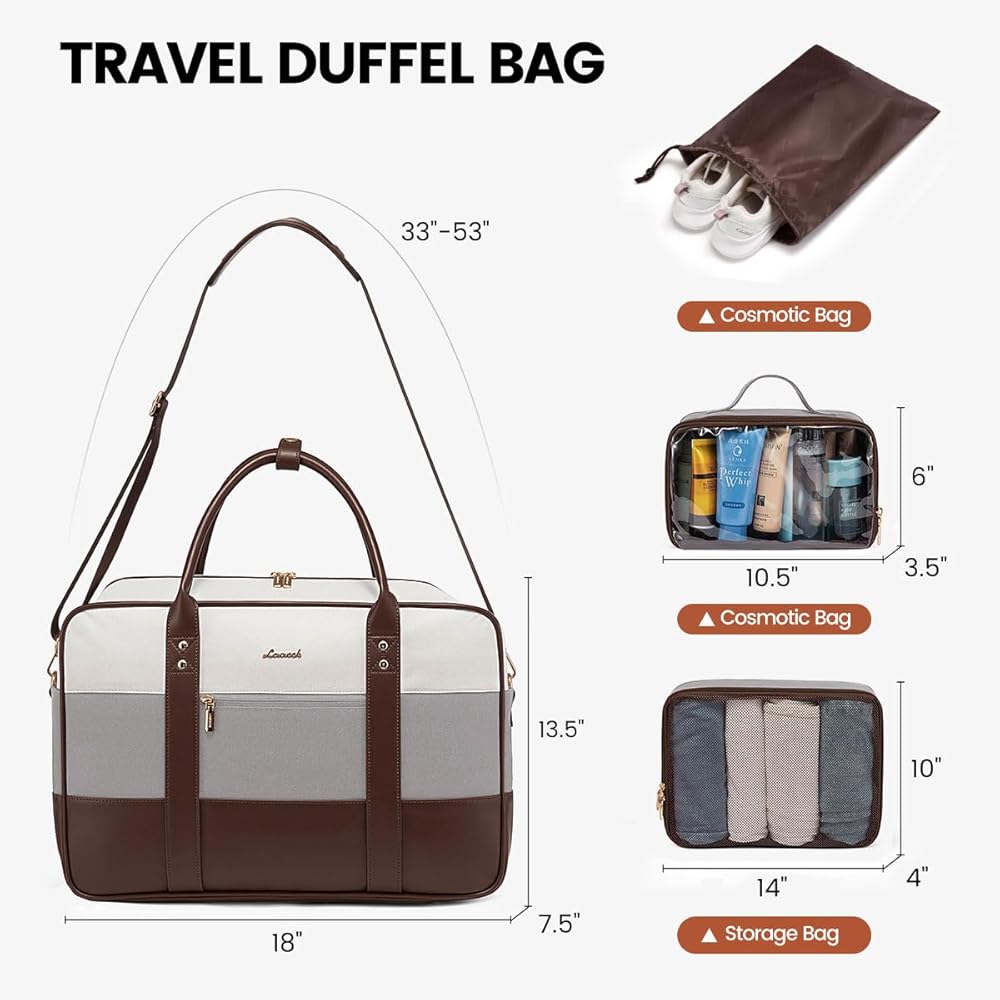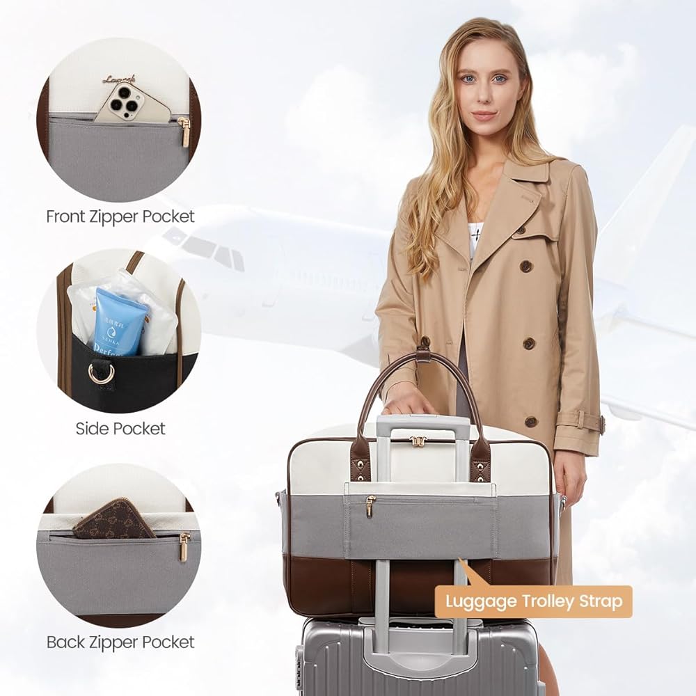 [OPTIMAL CARRY-ON DIMENSIONS] Our travel duffle bag size (18x13.5x7.5 inches) meets most airline size standards for personal items. Its unique side-opening, sponge-protected laptop compartment ensures quick security checks to simplify your journey. Blending practicality with sophistication, ideal for the modern traveler