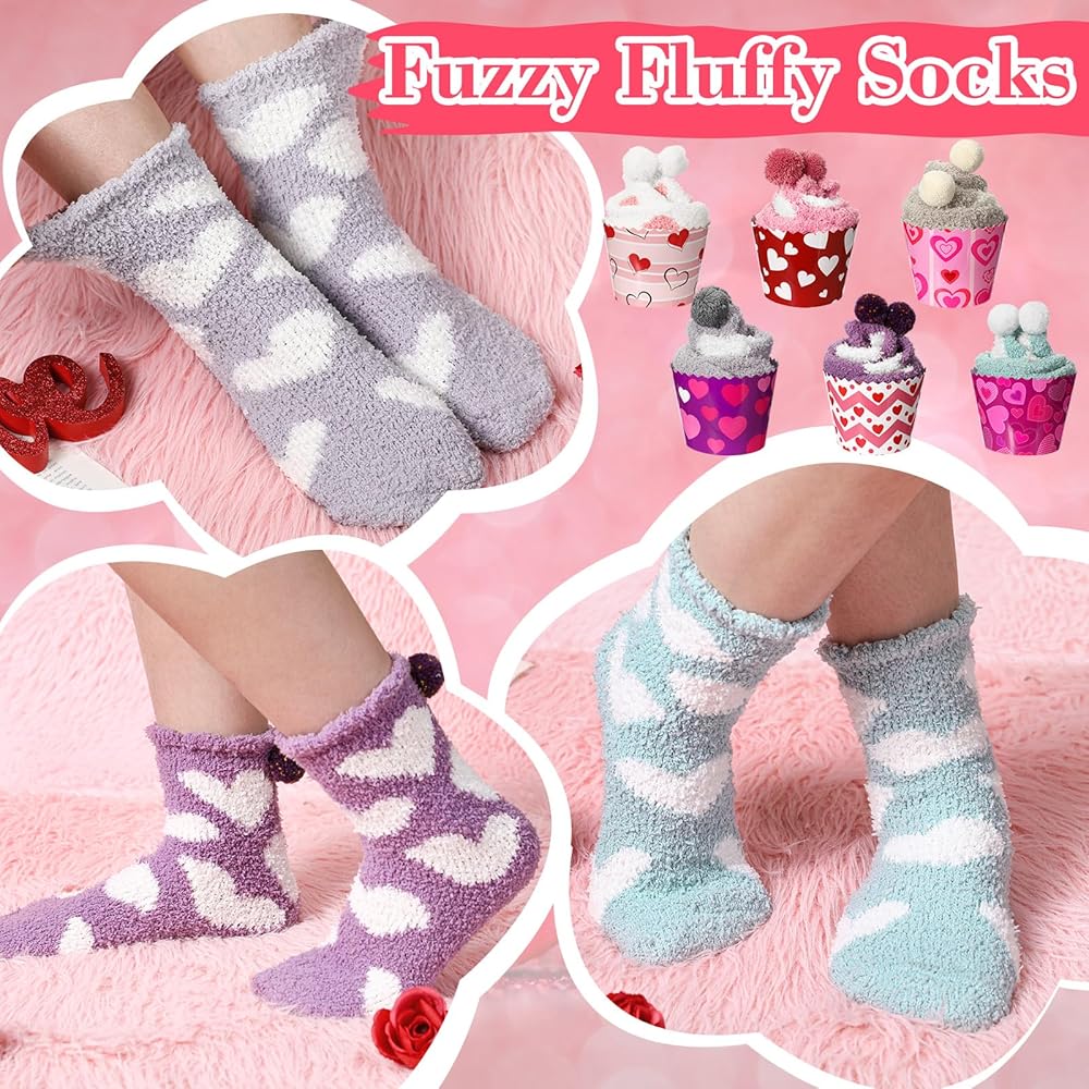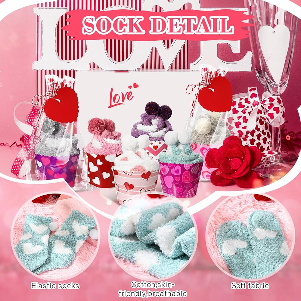 Adorable Packaging: the Valentine's Day furry socks come with pleasing accessories, mimicking a cupcake design, together with the cards of heart shape and bags adorned with love hearts, will truly delight the recipient while adding an element of surprise