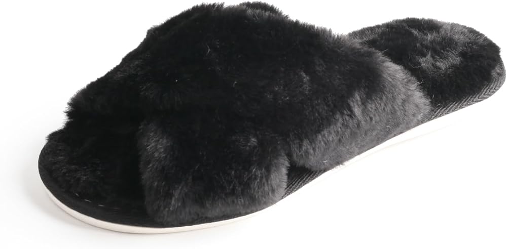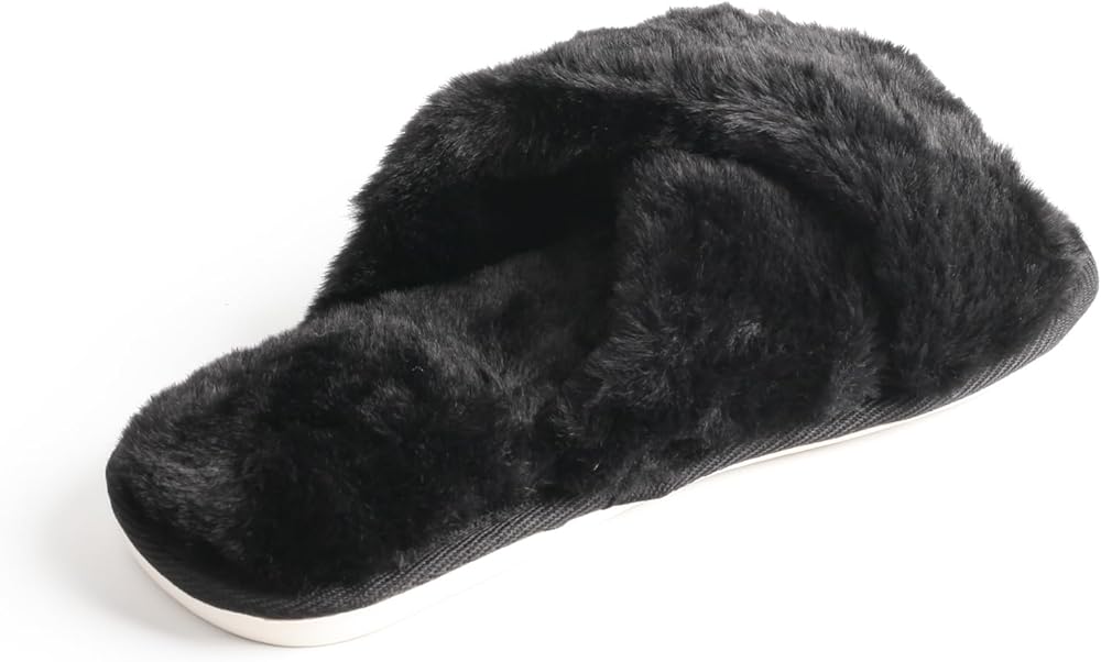TMA EYES Women's Slippers Fuzzy Warm Comfy Faux Fur Slip-on Fluffy Bedroom House Shoes Memory Foam Suede Cozy Plush Breathable Anti-Slip Indoor