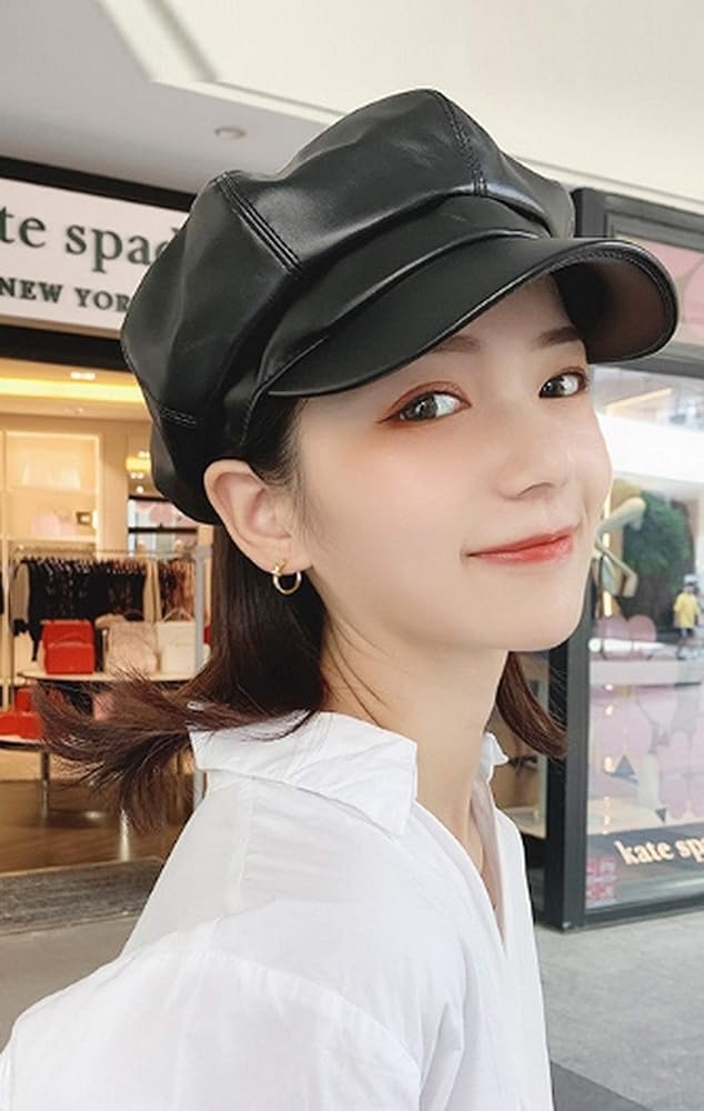 Classic PU Leather Peaked Beret Hat; Artist Hat; Newsboy Cap; Baker Boy Cap; 8 paneled Cap