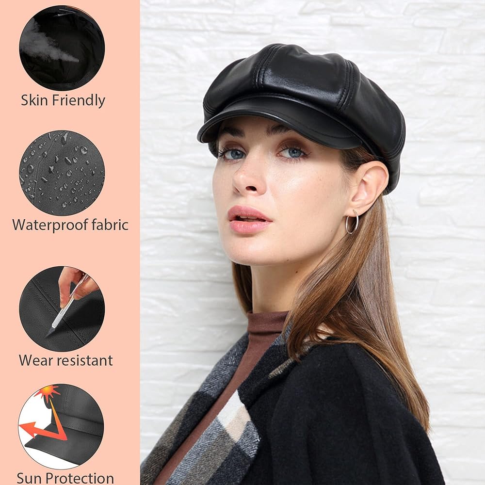 Great Gift Cabbie Baker Boy Hat: PU leather newsboy beret baker boy hat is a good gift for your friends and family on birthday and festival.It is a must-have item of every woman's wardrobe.