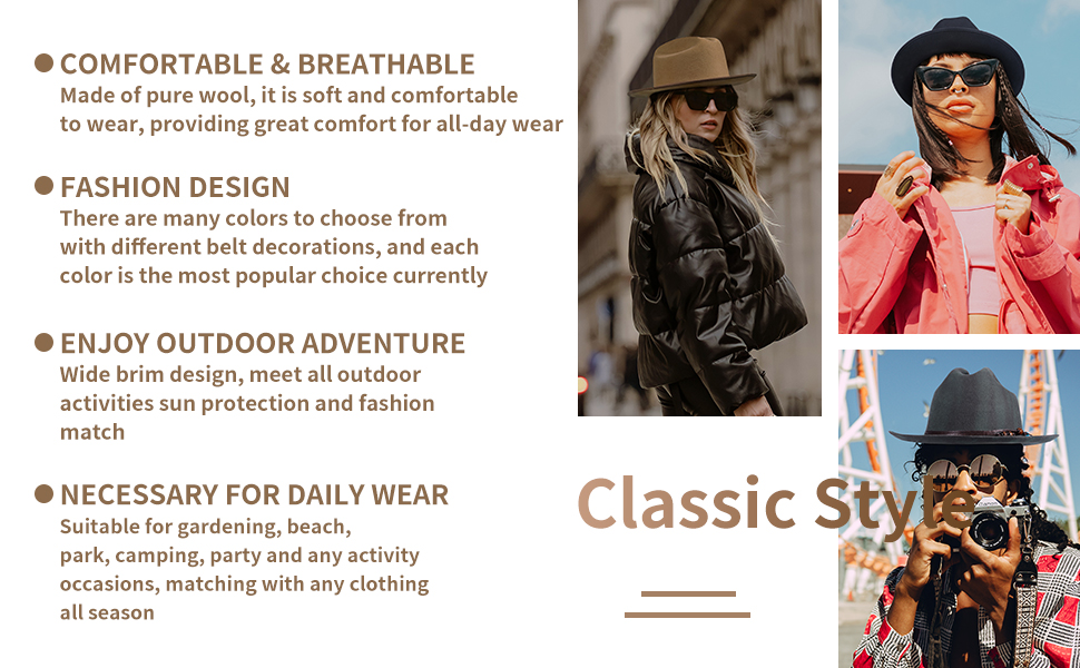 Match Any Clothes: The style of the wool felt hat is fashionable and individuality. It can be casually matched with a cowboy coat, casual wear, formal wear, etc., suitable for traveling, riding, taking photos, and so on.