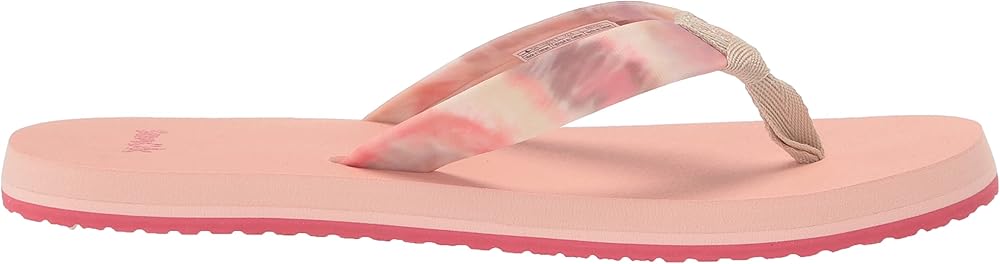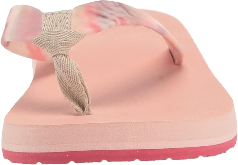 Water-friendly; tie dye printed polyester blend uppers; 100% REPREVE recycled polyester webbing toe post