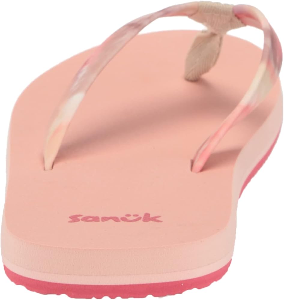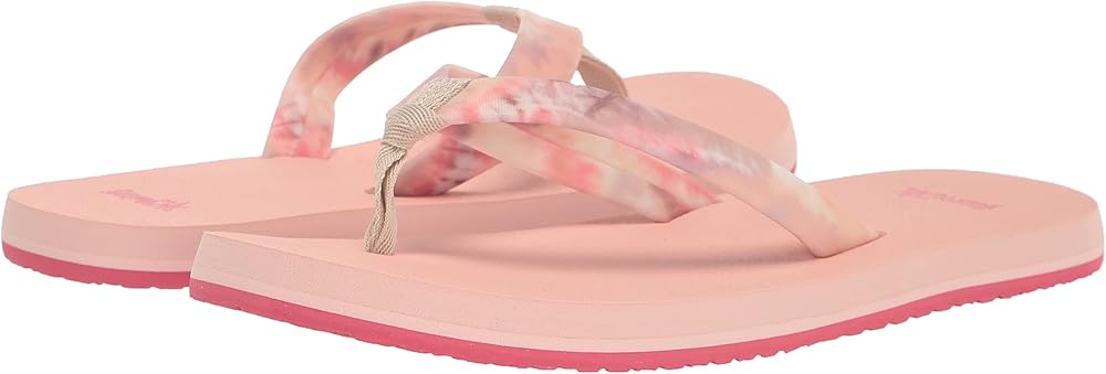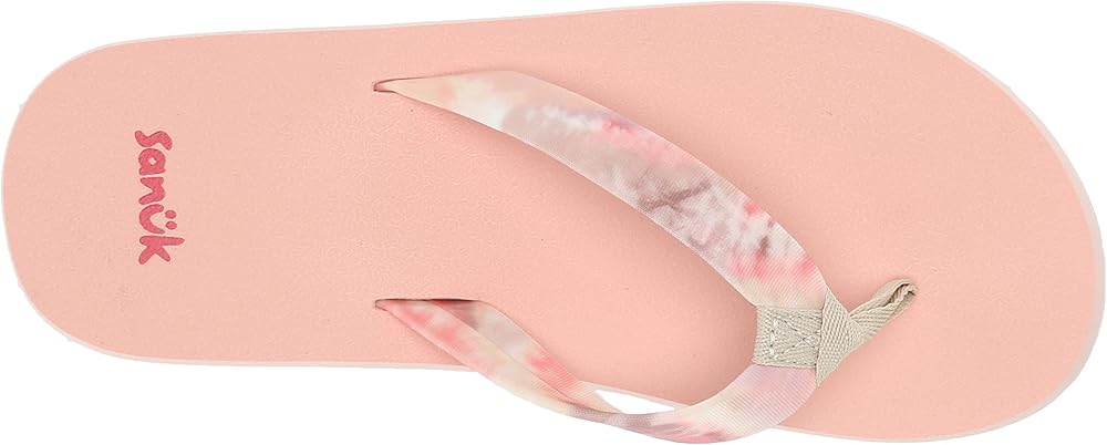 Sanuk Kids' Ashland ST sandals have water-friendly tie dye printed upper straps, comfortable soft top foam footbeds, and recycled sponge rubber outsoles. Made for kids and water, these comfy vegan flip flops are ready to splash. Machine wash on cold with color safe detergent. Allow Sanuks to air dry; do not put them in the dryer. Style# 1138772.