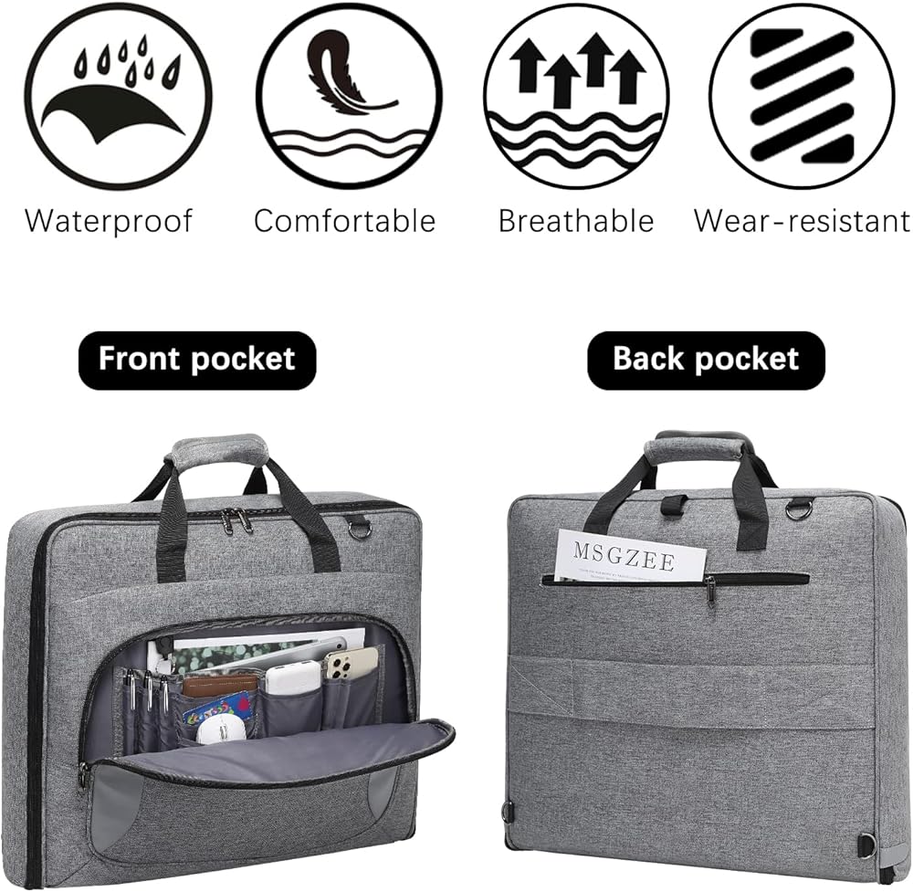 LARGE STORAGE CAPACITY & ORGANIZED COMPARTMENT: Convenient pockets for easy access. Suit garment bag is designed with multiple zipper pockets to Maximize efficiency when packing; 4 Interior pockets for shoes, ties, socks, and other small accessories, etc. 2 Exterior pockets; One front pocket is well organized & One back pocket is Large designed for electronics or travel documents, passport, pens, and some other small item, etc