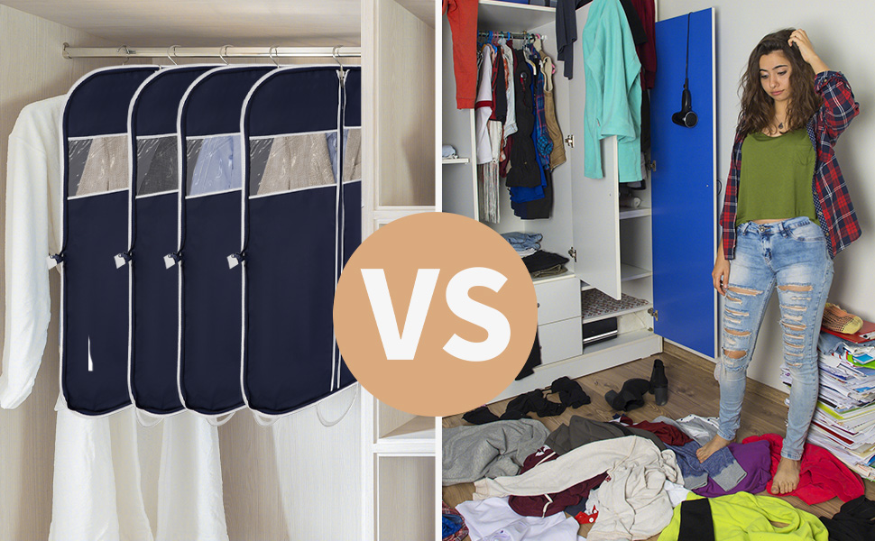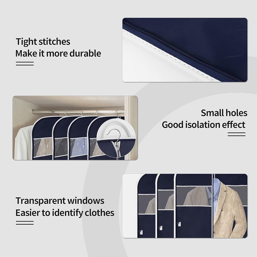 【Multi-Purpose】40" suit covers for men can hold multiple pieces of clothing, suitable for storing shirts, jackets, tuxedos, t-shirts, uniforms, fur coats, dresses, etc.