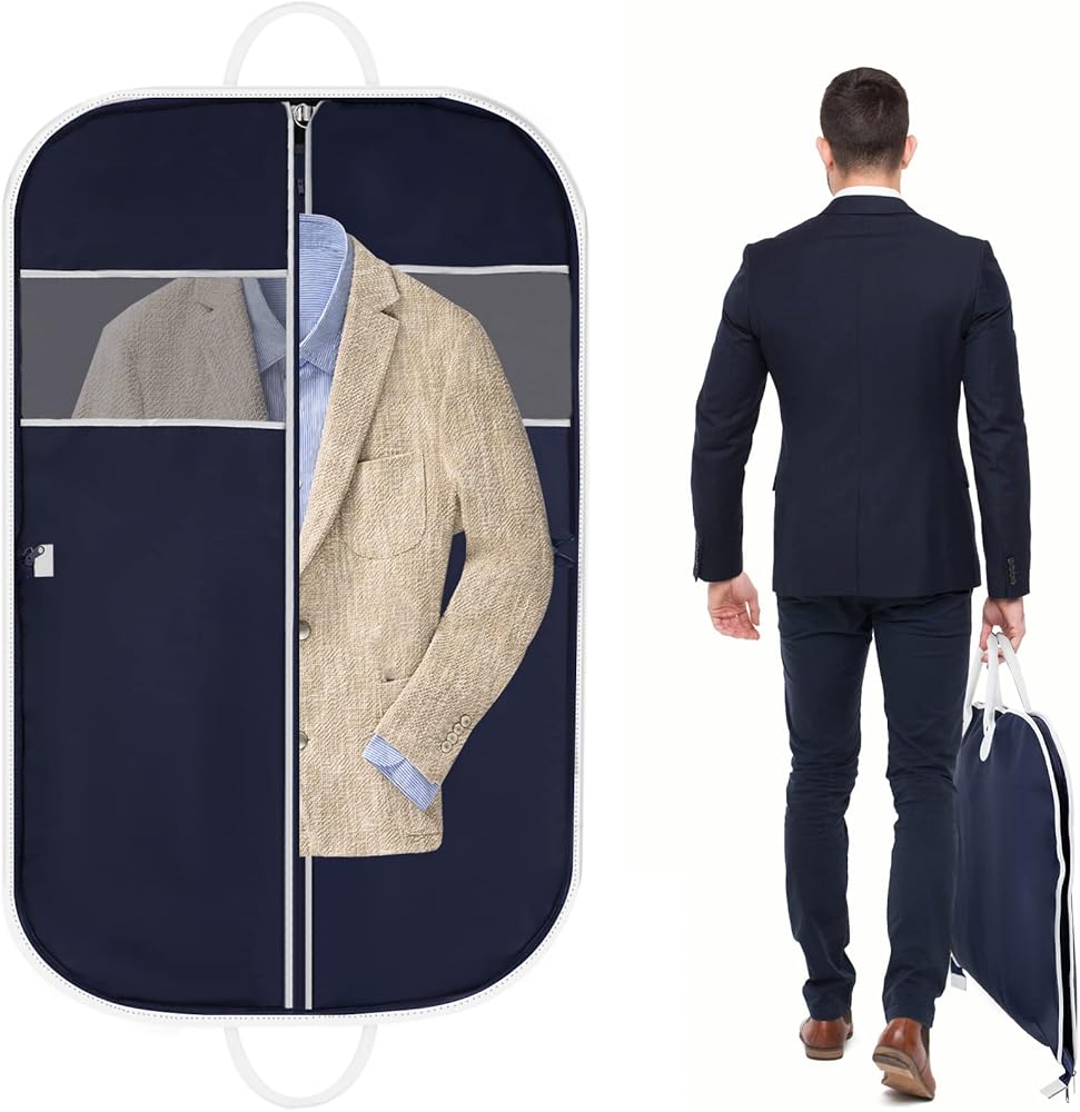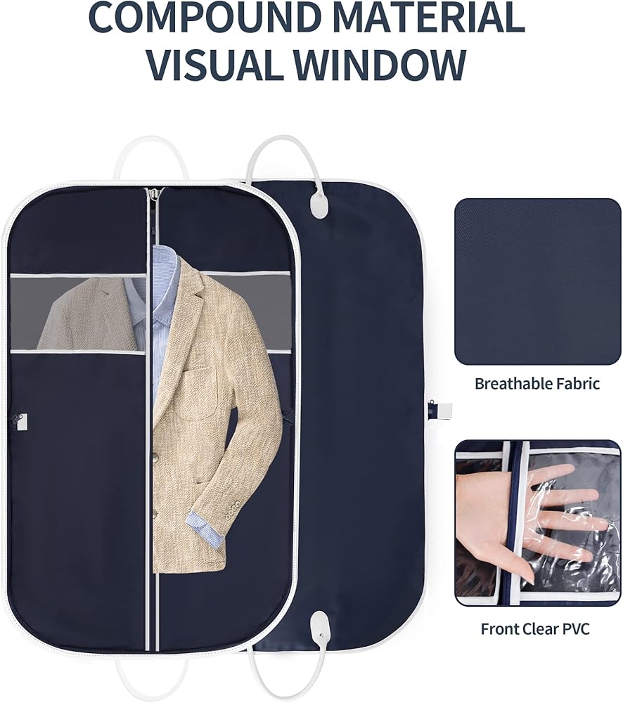 Jolitac 40" Travel Garment Bag, Breathable Suit Garment Cover Bag for Men Waterproof Oxford Fabric Suit Cover with 2 Carry Handles for Suit Coat Dress, Navy Blue