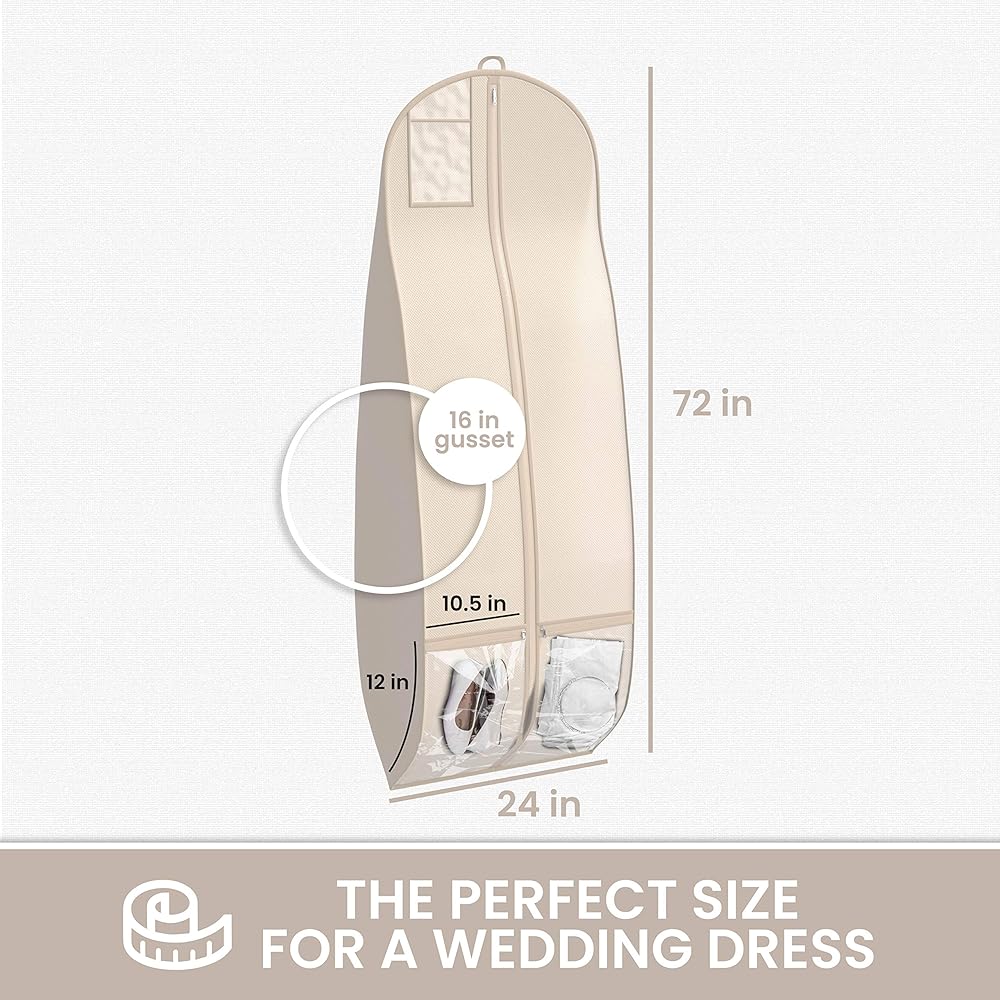 QUALITY MATERIAL: This storage and travel bridal gown garment bag is made of durable, rip and water resistant, soft, breathable material that promises to preserve fabrics in excellent condition, effectively preventing yellowing