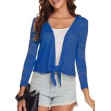 【Elegant and Stylish】Tie Front-this bolero shrug makes you look cute whether knotted or draped. 3/4 Sleeve-this lace shrug is good for covering upper arms to make you more confident.Crochet Knit-this mesh knit shrug breathable and lightweight.