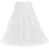 The Tea Length Petticoat features with 2 layer pearl gauze and 1 soft taffeta lining. The outer two layers with 3 tiered organza with plenty of gathers to hold the dress's shape, the soft lining prevent scratching your gentle sensitive skin.