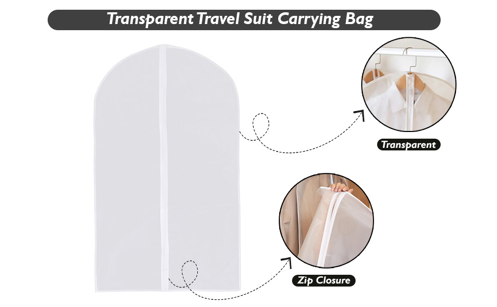 1 Piece Travel Garment Bag Lightweight Water-Resistant Material Transparent Zipped Travel Suit Bag For Carrying And Storing Outfits 60x100CM, Transparent, 60x100 CM, Zipped