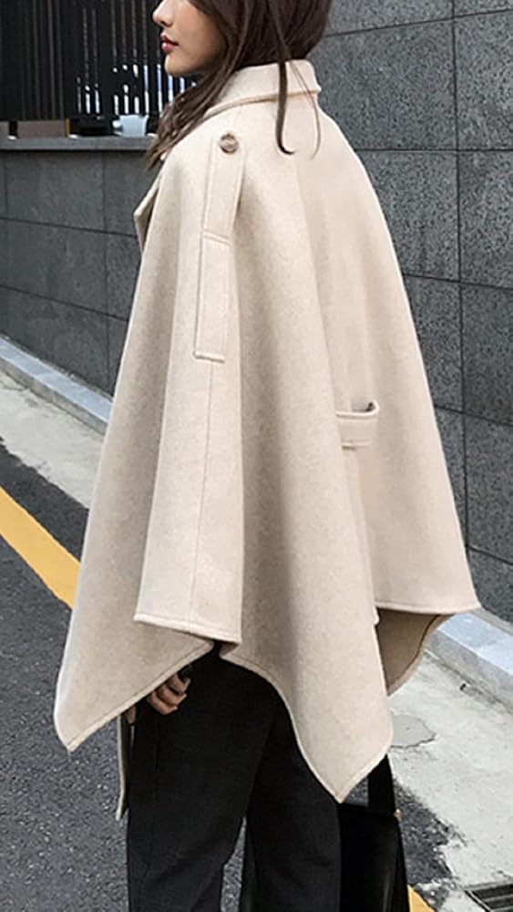 CHARTOU Women's Elegant Lapel Collar Wool Blend Bow-Tie Poncho Cape Jacket with Belt
