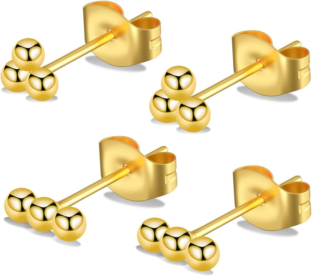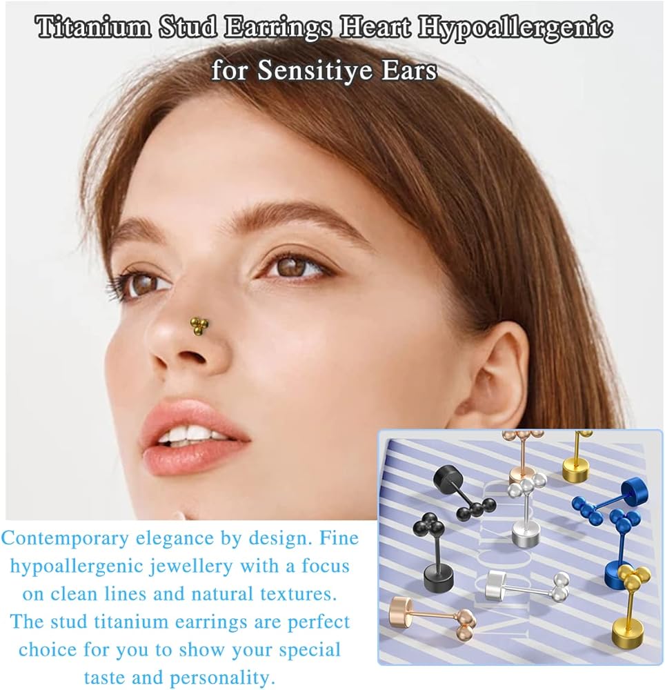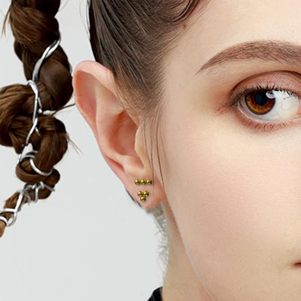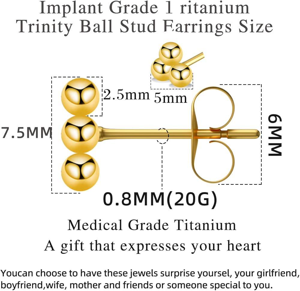 💝【Design Details】 This stud earring has an F136 titanium stud earring composed of 3 small balls. The design of three titanium alloy small balls connected in a row or stacked into a triangle is more classic and fashionable. It is a gorgeous and minimalist earring. Jewelry that you can wear every day.