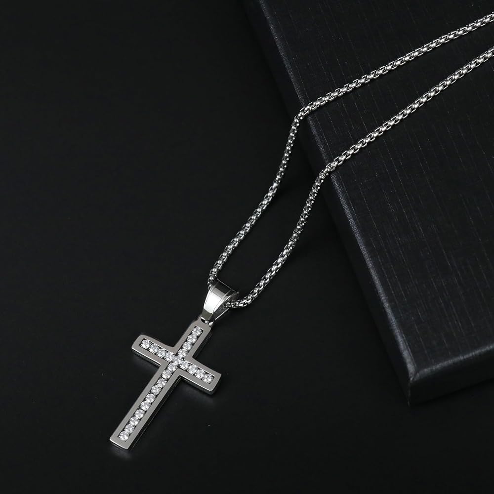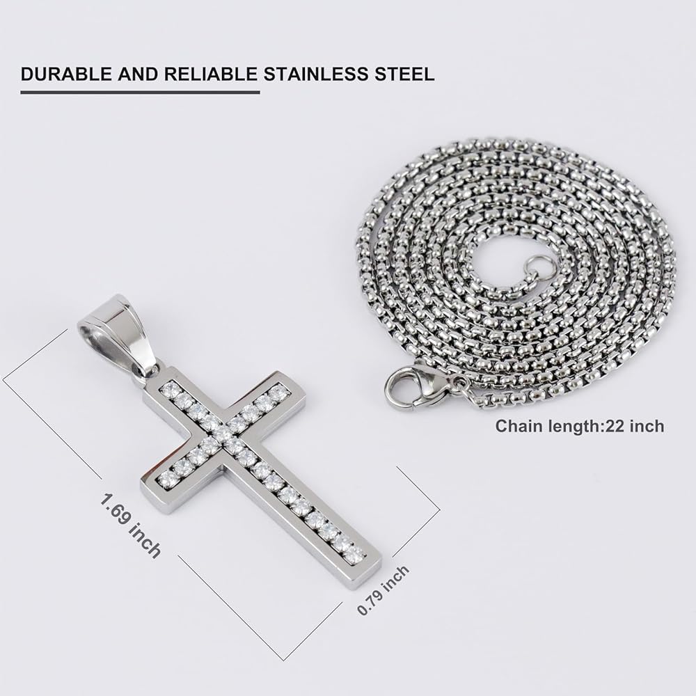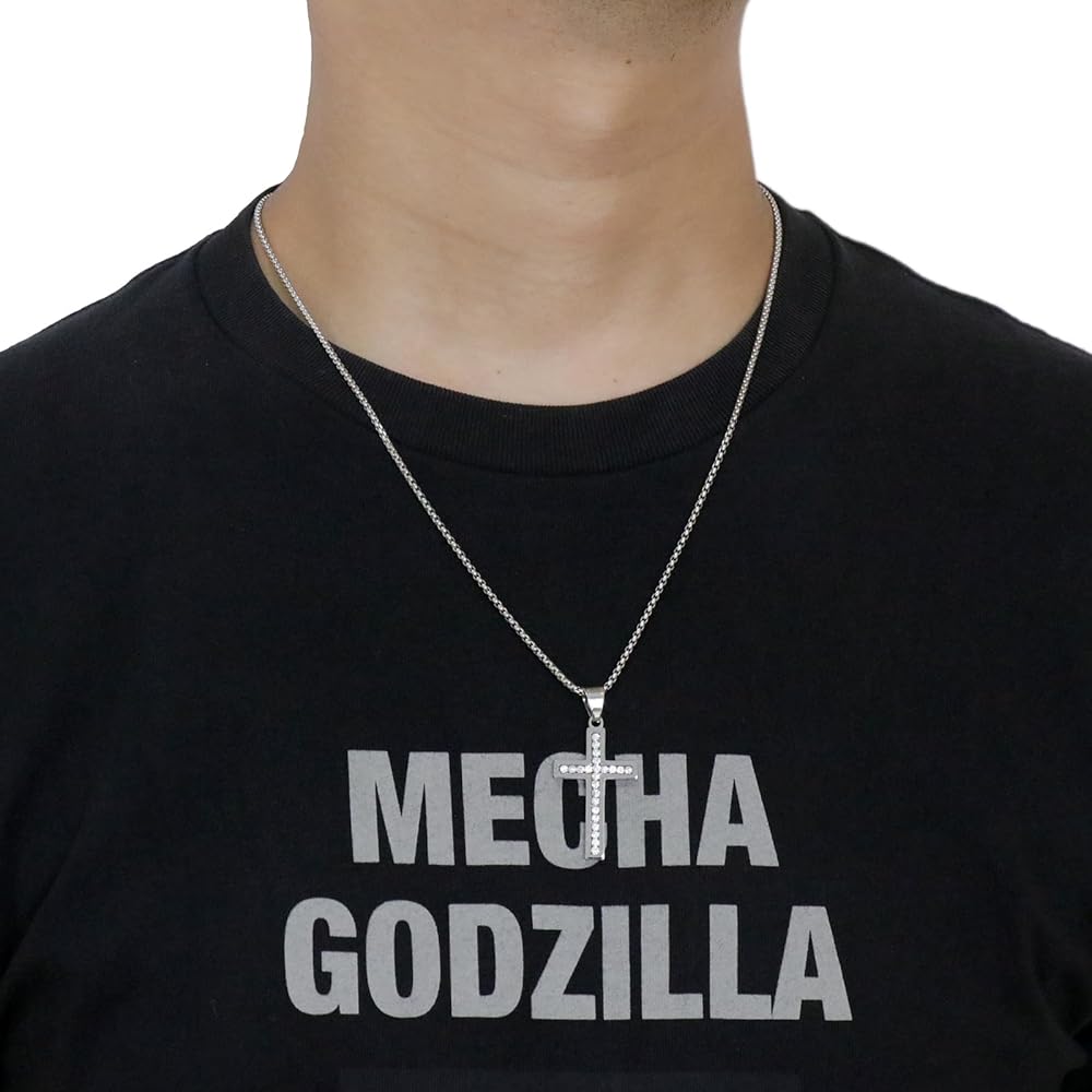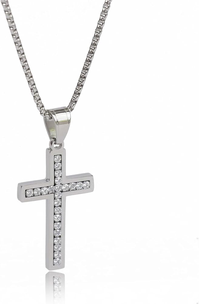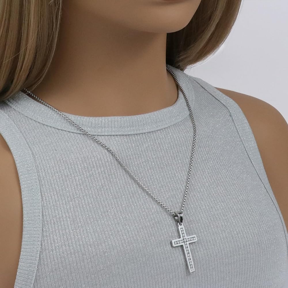 Adorned with meticulously set pave cubic zirconia stones, this cross stainless steel necklace adds a touch of brilliance and glamour to your everyday attire, making you shine wherever you go.