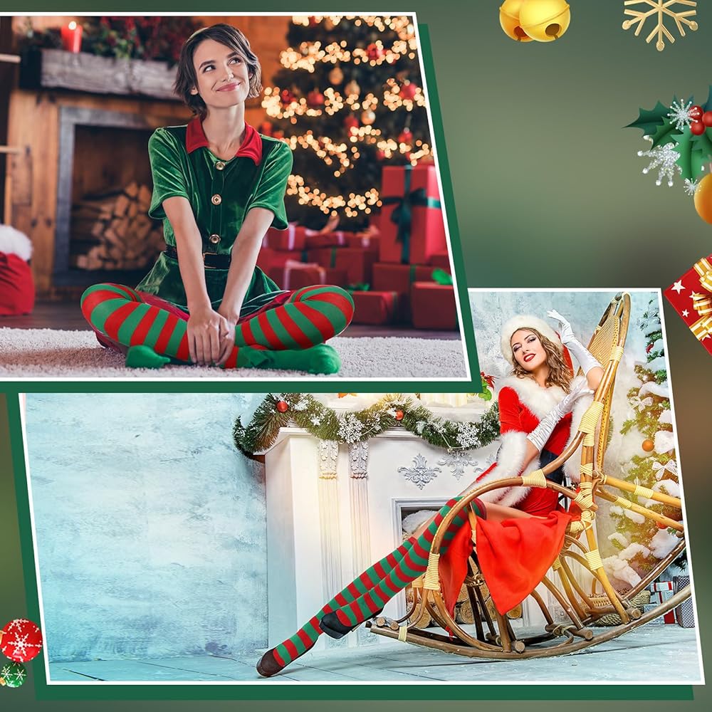 Christmas Thigh High Socks:Christmas socks are made of nylon, polyester and spandex blended fabrics,durable and long-lasting soft and breathable with good elasticity absorbent and deodorizing materials are more stable and elastic than ordinary knitted socks