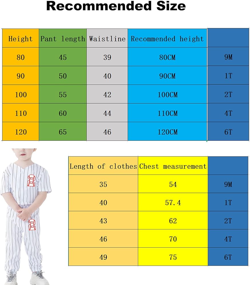 Our children's baseball jersey fabric is soft and comfortable, and cleaning is simple and convenient. It looks very small and cute to wear, and it is very suitable for your children, especially at their birthday parties. The numbers 1, 2, 3, 4, 5, and 6 are printed on the left chest and back of the dress, and the number 1 is also printed on the left side of the pants. Wearing this baseball uniform will make your child the most dazzling one in the crowd.