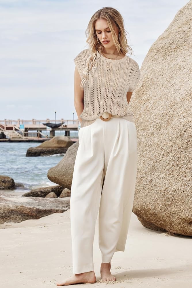 SUMMER TOPS FOR WOMEN 2024: Arach&Cloz Women's Sweater Vest is expertly crafted from a cool and lightweight crochet knit fabric, and its hollow out design let you stay comfortably cool in the hot summer