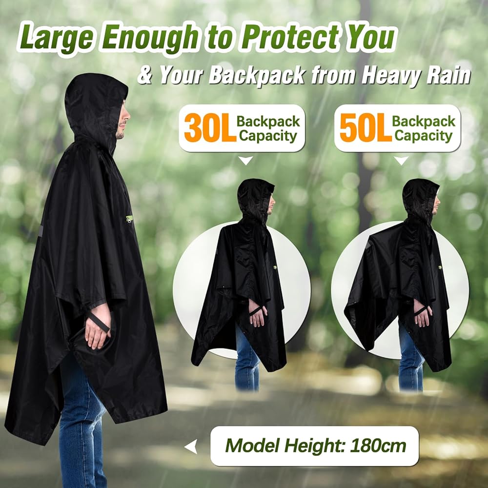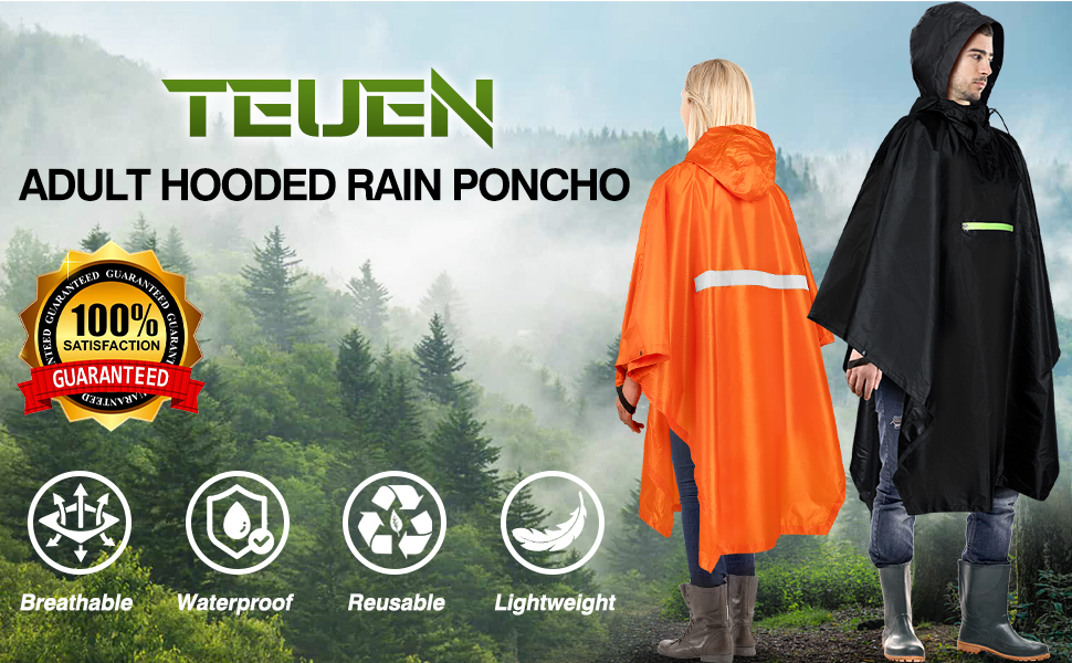 【WATERPROOF & DURABLE】: TEUEN rain poncho is made of 210T high-density polyester fabric + TPU coating, waterproof, abrasion-resistant and tear-resistant, waterproof coefficient of PU5000MM, the seams are sealed with waterproof material to make sure that there will be no rainwater leakage from the seams, keeping you and your belongings dry.