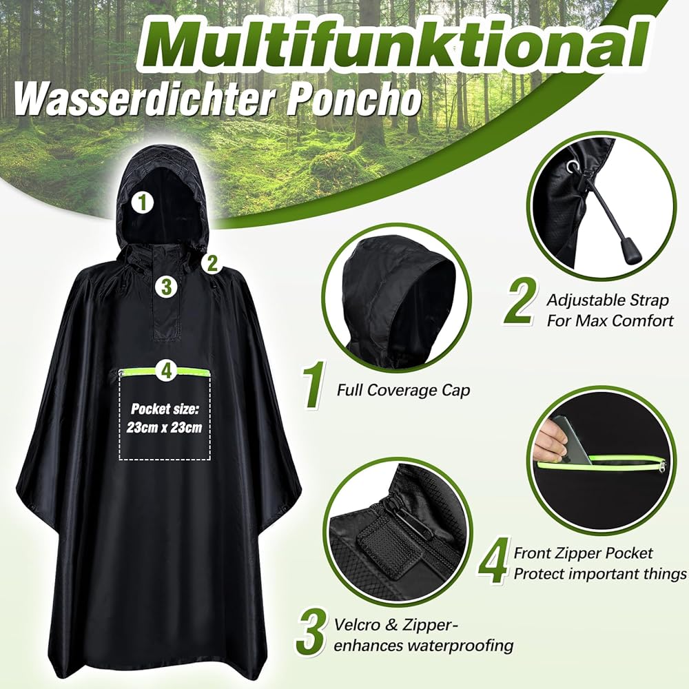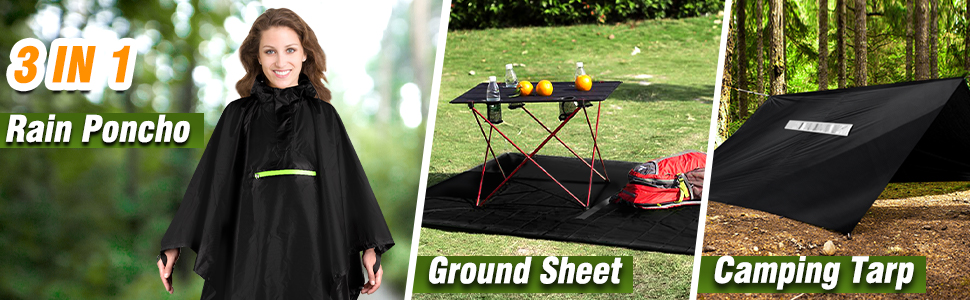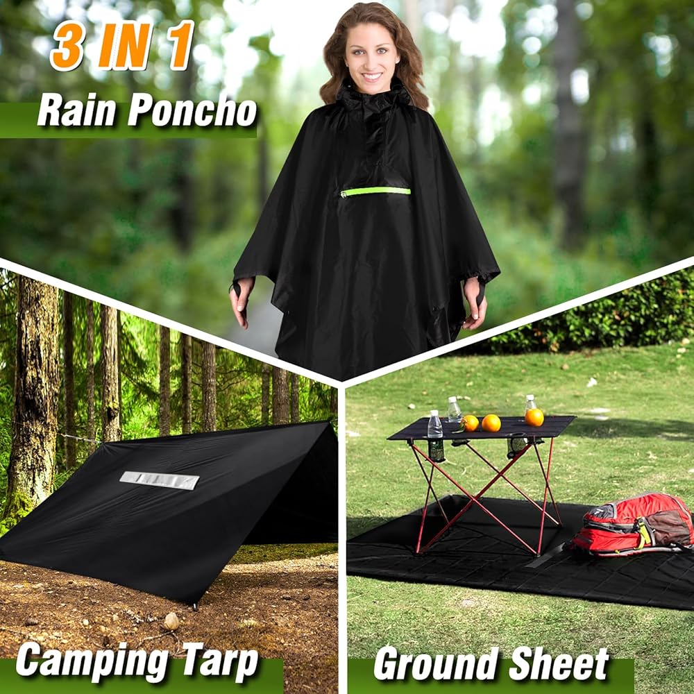 【MULTIPLE USES】: The 3-in-1 multifunctional poncho can be used as a floor mat, raincoat, simple shelter and canopy for hiking, camping, hunting, fishing, riding and other outdoor activities, and is also perfect as a gift for travelers, outdoor enthusiasts and more.