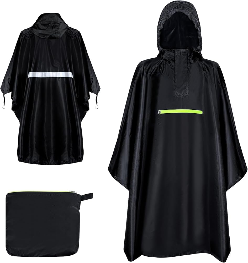 【REFLECTIVE STRIP DESIGN】: Our rain ponchos for adults has wider and longer reflective strip on the back, which allows you to enhance your visibility when traveling at night, in rain or snow, and effectively protects your personal safety. It comes with a drawstring hood that fits your head and face perfectly, keeping your head out of the rain. Let you travel safely and easily!