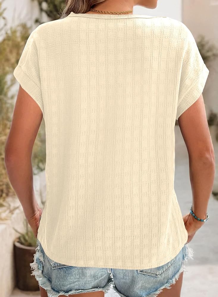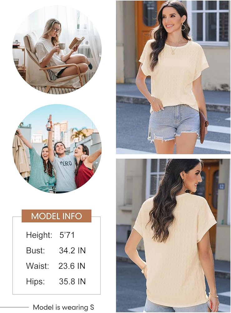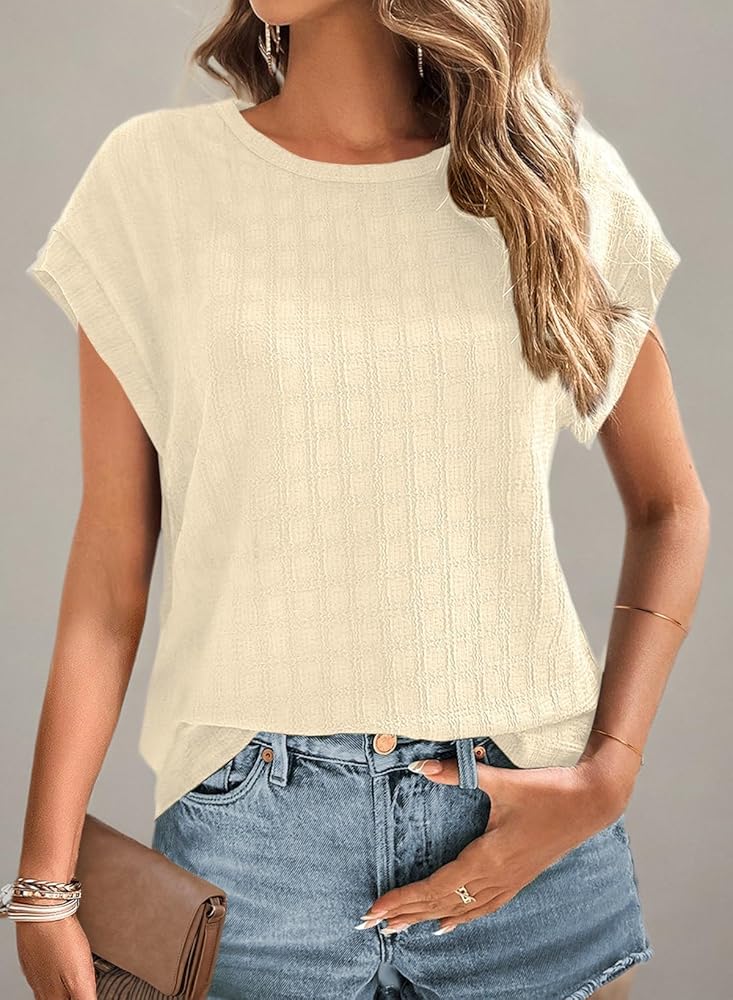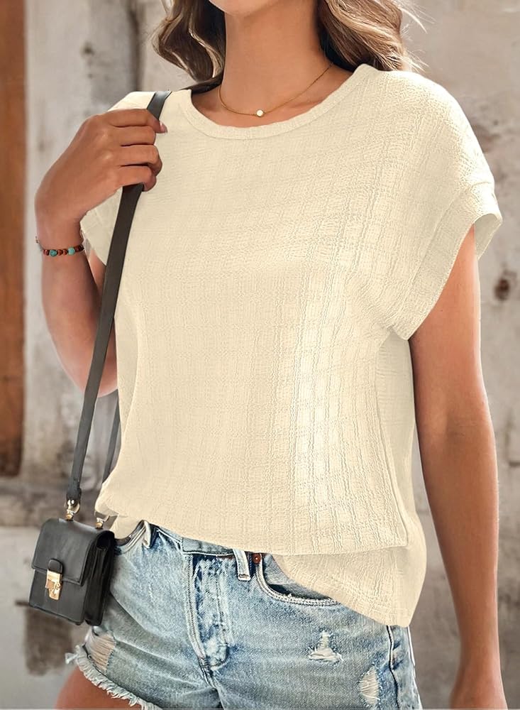 Features: Short Sleeve, Textured Tops for Women Trendy, Solid Color T Shirts, Cap Sleeve/Batwing Sleeve,Crewneck, Basic Tees for Women,Casual Dressy Tops for Women