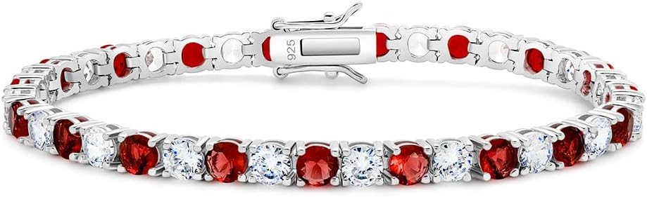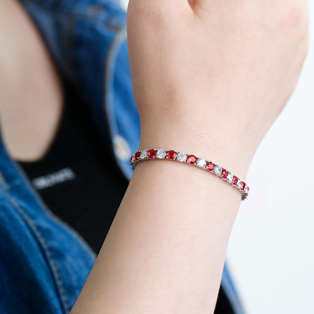 [Classic Tennis Bracelet Design] Round cut cubic zirconia and emerald/ruby tennis bracelet is the elegant and classic style fits for most dress and occasion.