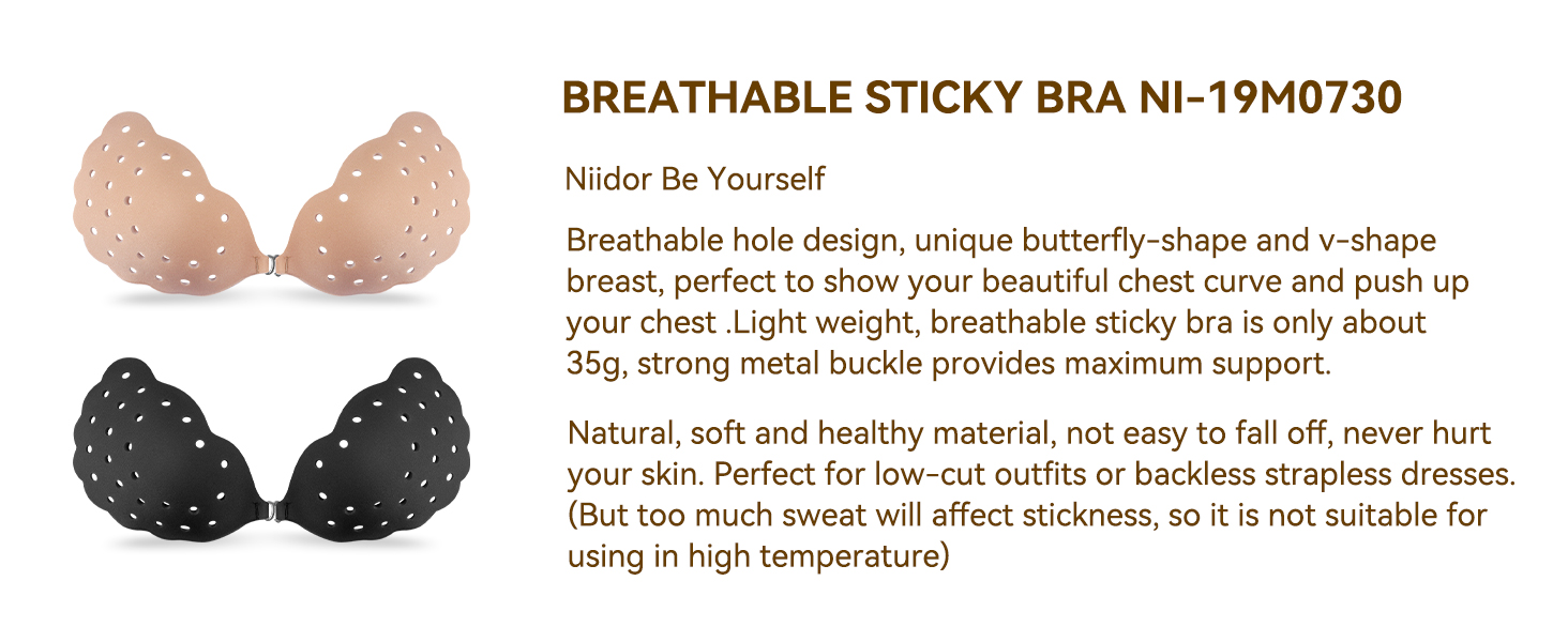 ◤ BREATHABLE HOLLOW HOLE & PUSH UP INSTANT LIFT: Only Niidor ---- Newest Original adhesive bra with breathable hole design.Not like other ordinary stick on bra common appearance, you deserve it! Self adhesive bras helps push up your chest and shape the charming effect of deep “V”. Unique Butterfly-shape design, Better to show off your beautiful chest curve, increase your sexy glamour rating.