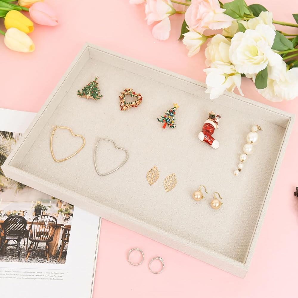 MATERIAL: Beige velvet jewelry tray for drawers made of high quality linen. It feels great to the touch and looks elegant.This jewelry soft lined help prevent tarnishing and scratching
