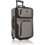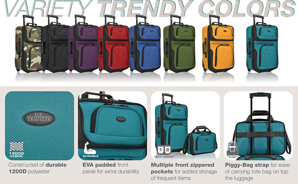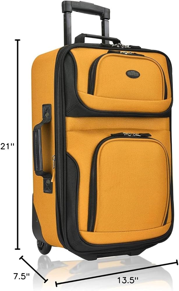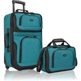 Travel in style with this U.S. Traveler Rio 2-piece Carry-On Luggage Set. It includes a 21" expandable, wheeled upright and a 14" boarding bag. Both pieces of the Rio luggage set meet the FAA carry-on regulations. You can easily slide the boarding bag over the handle of the 21" expandable, wheeled upright, making travel a snap. This US Traveler luggage set's metal hardware holds up to the rigors of the shipping process. Densely woven, 1200D polyester is very strong and keeps water from seeping in through the outside. The handle locks in place securely so you don't have to fiddle with it while you walk. A set of skate wheels make the luggage easier to transport without having to pick it up.