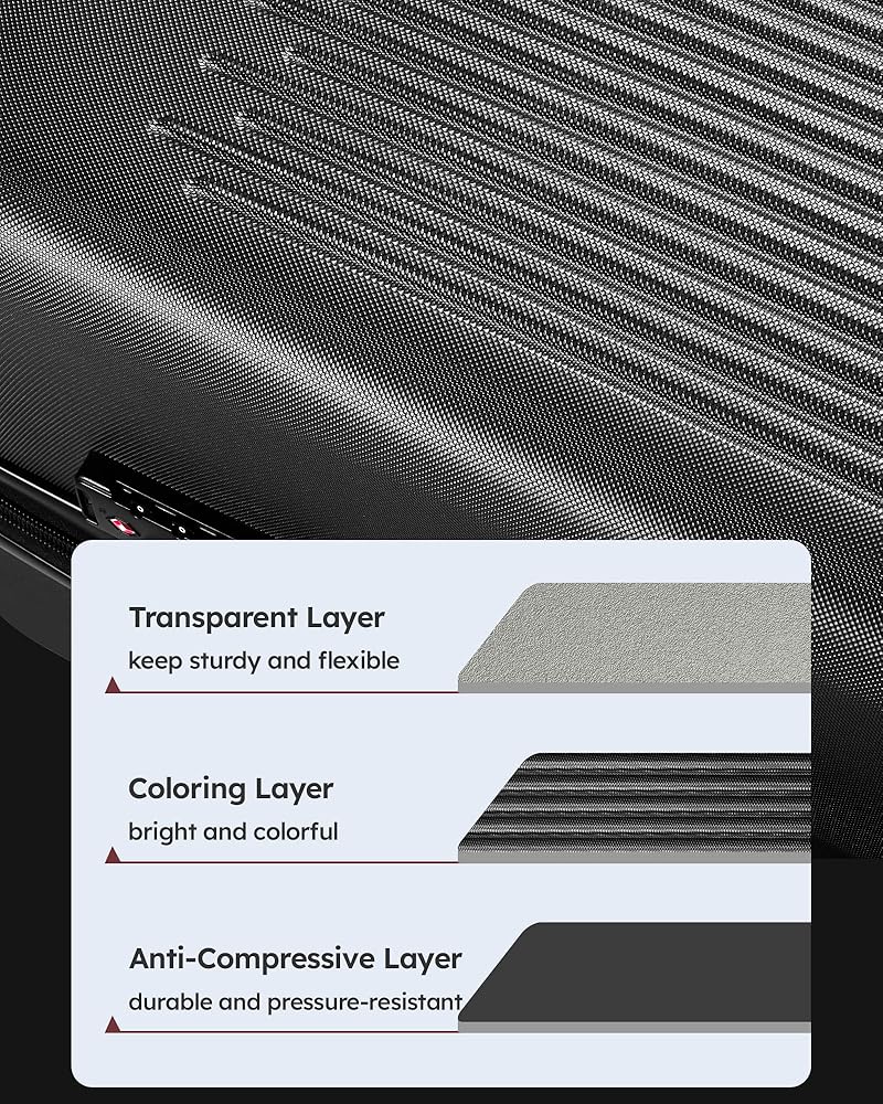 [Lightweight and Durable]The luggage is Made of hard-side ABS material,it is lightweight and durable to travel,The striped textured surface resists scratches,won't be scratched easily, keeping your suitcase still keeping great after travel.Also the suitcase color scheme is fashionable, suitable for different groups of people,whether it is traveling or business trip, the suitcase for woman and man,all can become the most beautiful scenery.