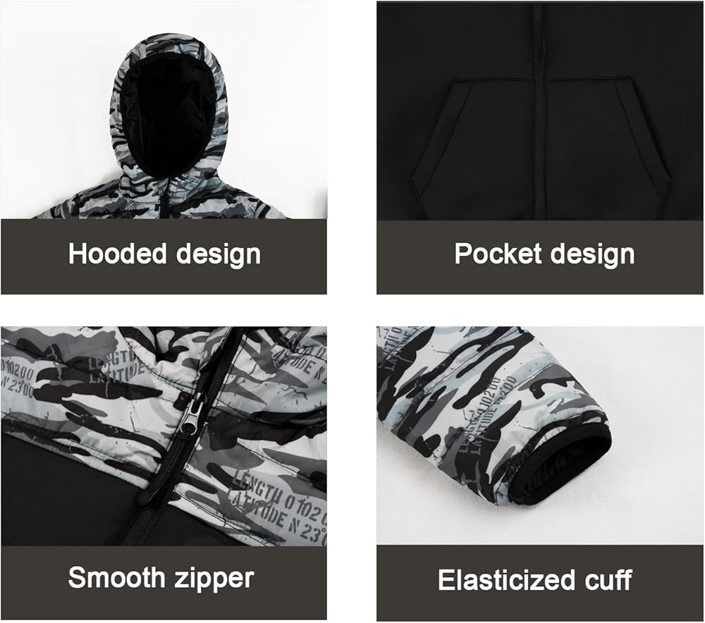 Stand out with eye-catching camouflage prints: The winter coat comes in multiple camouflage printing designs that are sure to turn heads. Let your little ones showcase their unique style and personality.