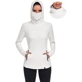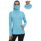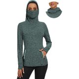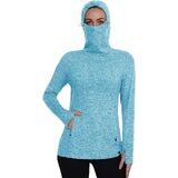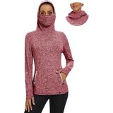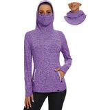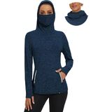 【Thermal Workout Tops with Neck Gaiter Face Mask】Fleece cowl neck tops/womens running pullover design with neck gaiter and hoodies,which help you keep out the cold wind while riding in cold weather.Thermal long sleeve fleece tunic perfectly cover your face in the cold weather in the outdoors.