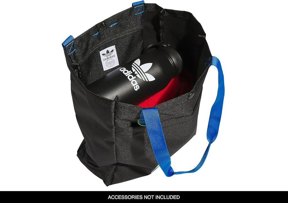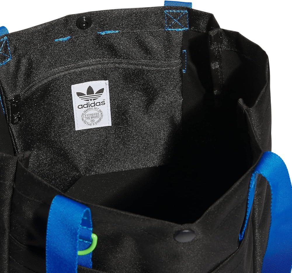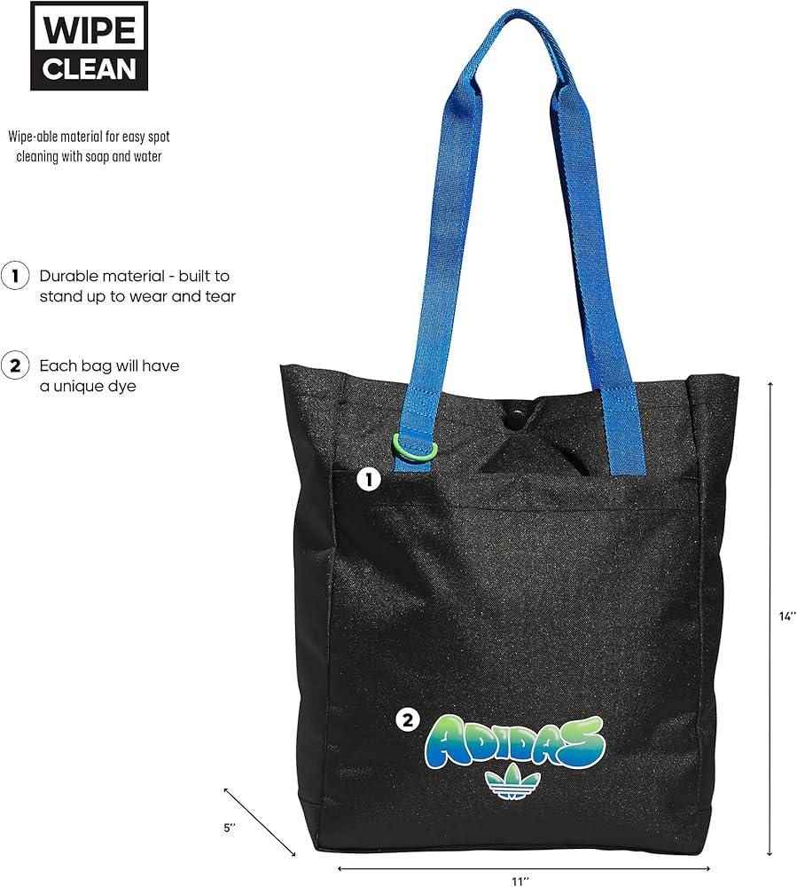 Add ease to your day with this durable tote bag from adidas. The inside wipes clean with soap and water. This item is made from salvaged multicolor webbing and will be unique and vary in color.