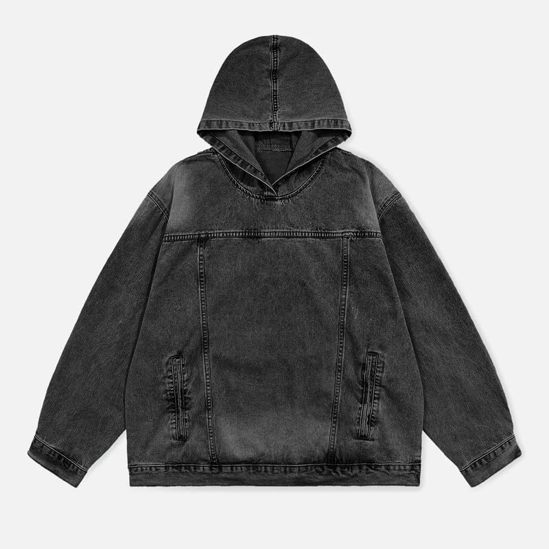 【Material】This loose fit denim hoodie for womens is made with cotton blend, thick but lightweight, good touch your skin and provide you a comfortable experience.