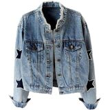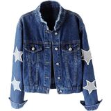 Casual jean jacket women,fashion jackets for women, classic denim jacket for women, vintage womens jean jacket, distresse jeans jackets for women, star pattern jean jackets for women fashion, fall jackets for women, womens denim jacket, workout jackets for women.